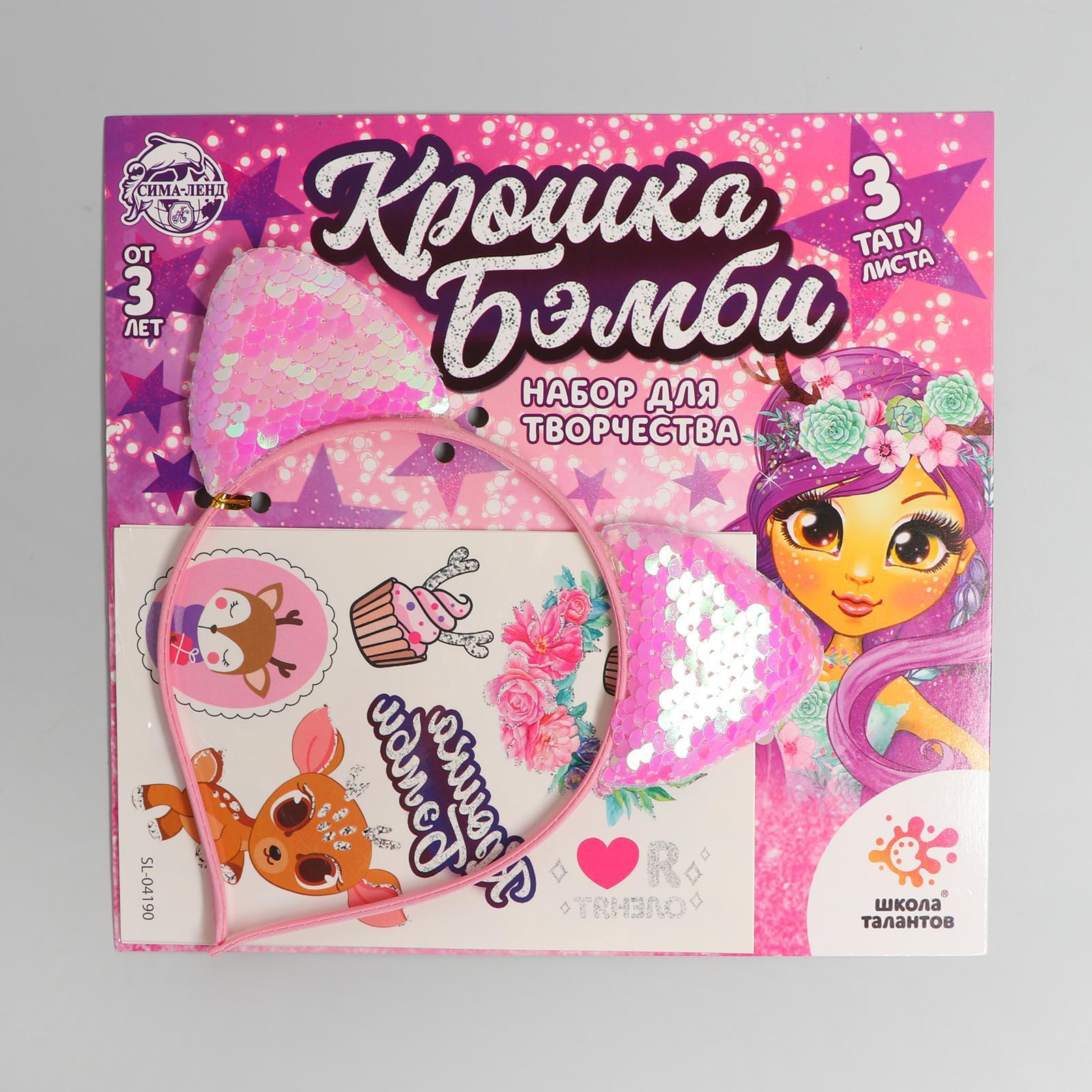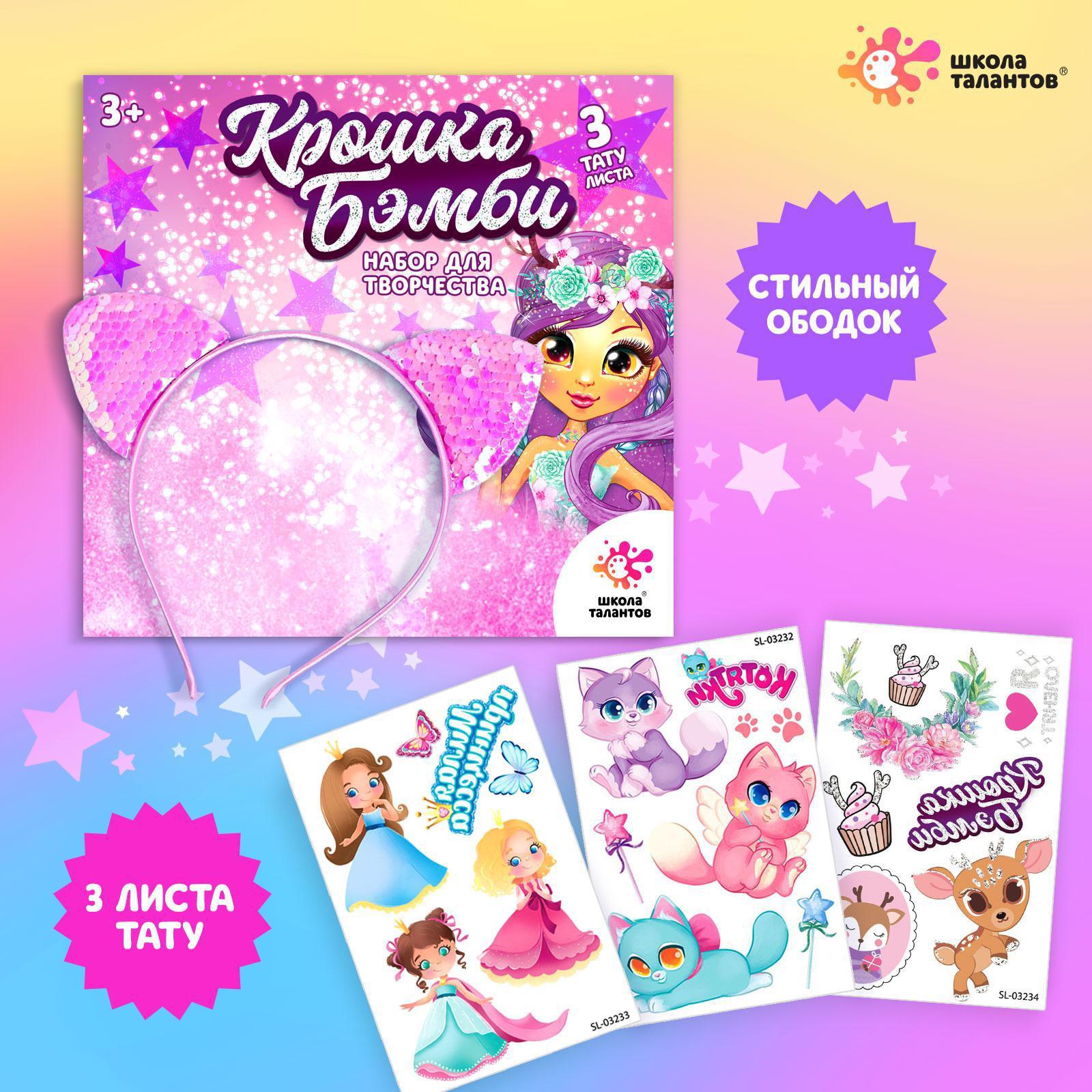 С набором «Крошка Бэмби» каждая девочка примерит на себя образ сказочного персонажа. C помощью временных татуировок она сможет украсить не только свою кожу, но и прикрепить изображение на другие поверхности, например на обложку тетрадки или мебель.