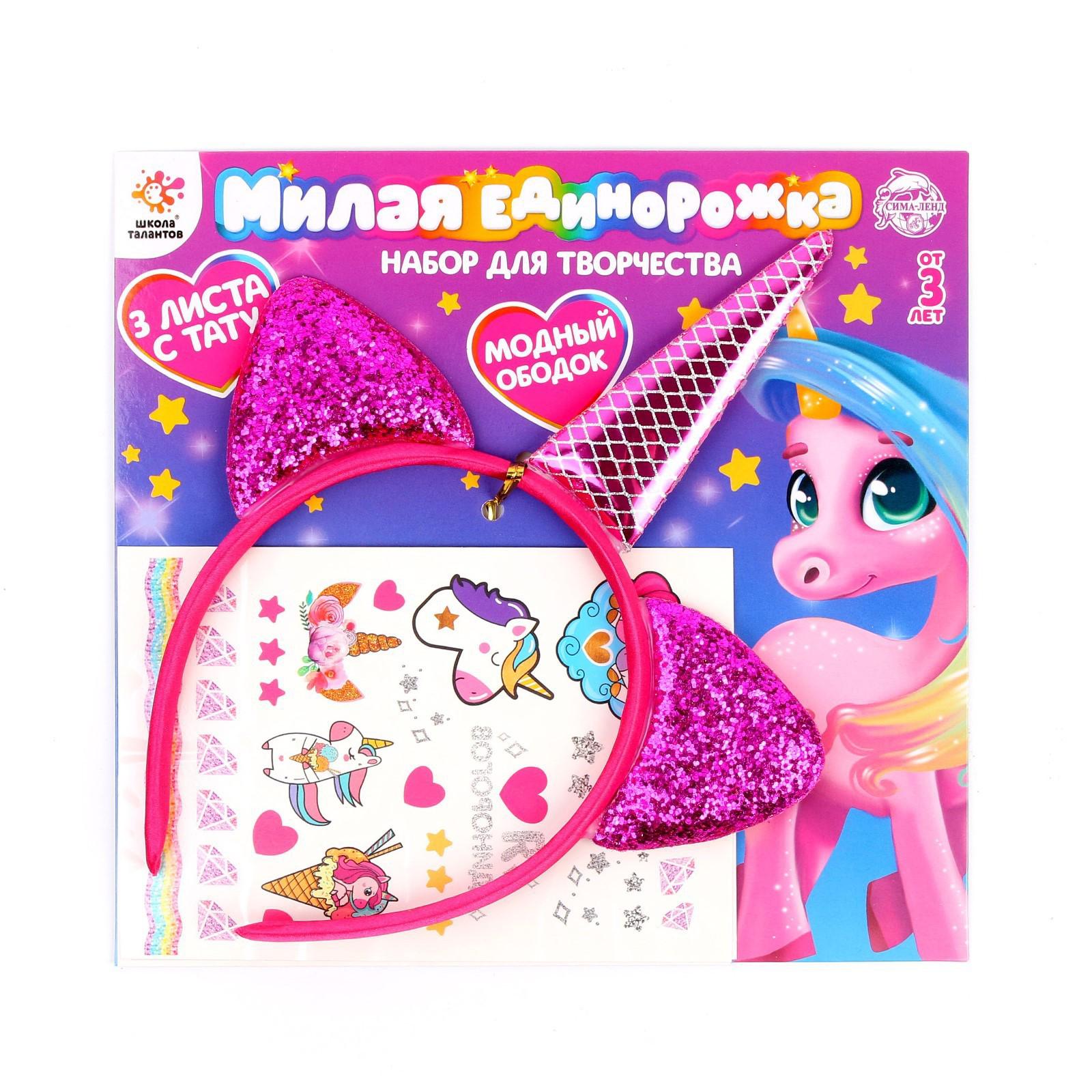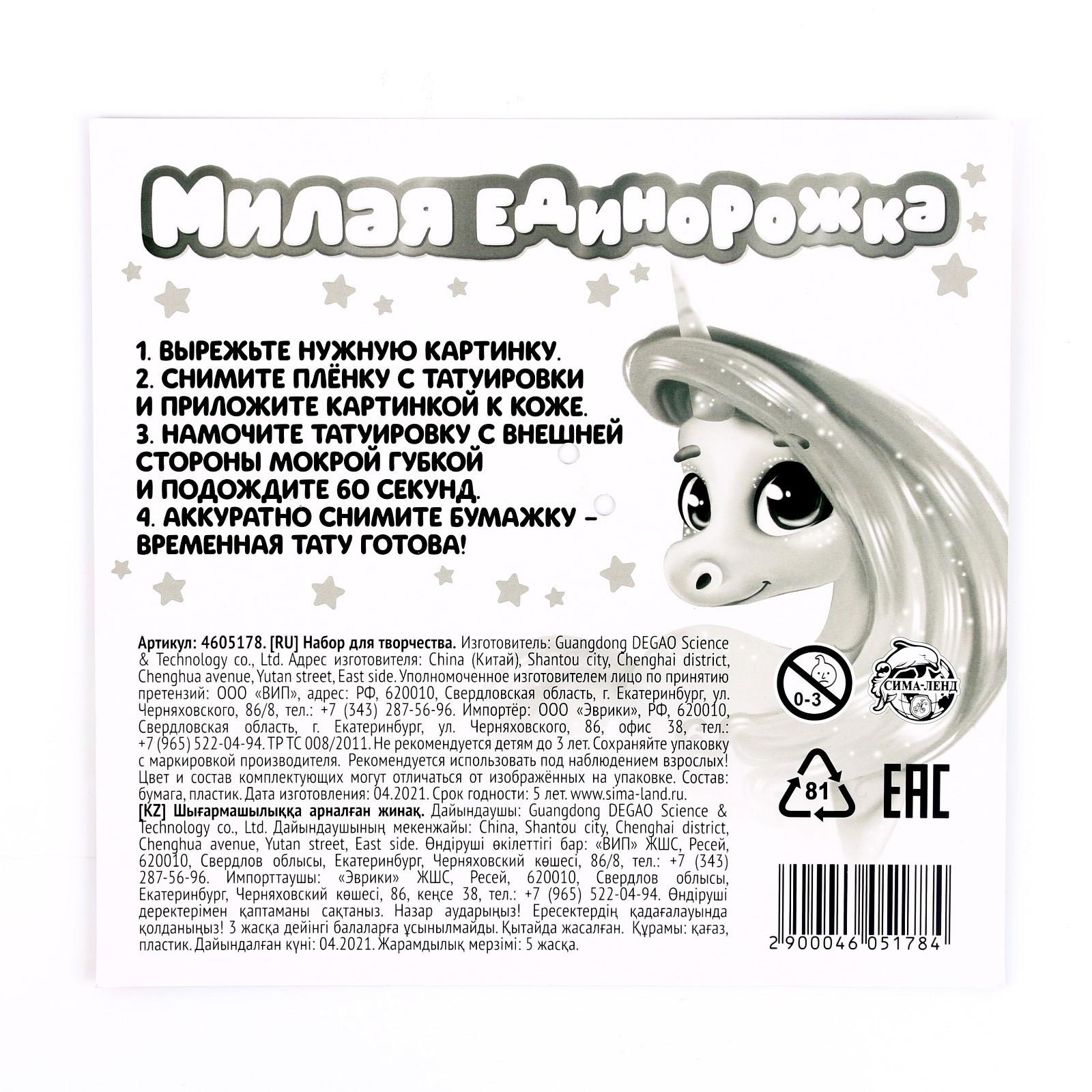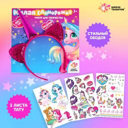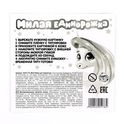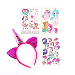 С набором «Красавица единорожка» каждая девочка примерит на себя образ волшебной зверушки. C помощью временных татуировок она сможет украсить не только свою кожу, но и прикрепить изображение на другие поверхности, например на обложку тетрадки или мебель.