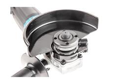 Благодаря небольшим габаритам (длина всего 266 мм) и малому весу (1,4 кг) углошлифовальной машиной легко управлять даже одной рукой, она маневренна и практически не вызывает усталости даже при длительной эксплуатации. Для продолжительной беспрерывной работы предусмотрена блокировка кнопки пуска во включенном положении. Корпус оптимально приспособлен для надежного и удобного захвата, кроме того для еще более уверенного управления есть дополнительная боковая рукоятка. Антивибрационная боковая рукоятка может быть установлена как справа, так и слева, в зависимости от пожеланий пользователя, кроме того угол ее наклона к корпусу в этой модели составляет 100° для большего удобства пользователя.