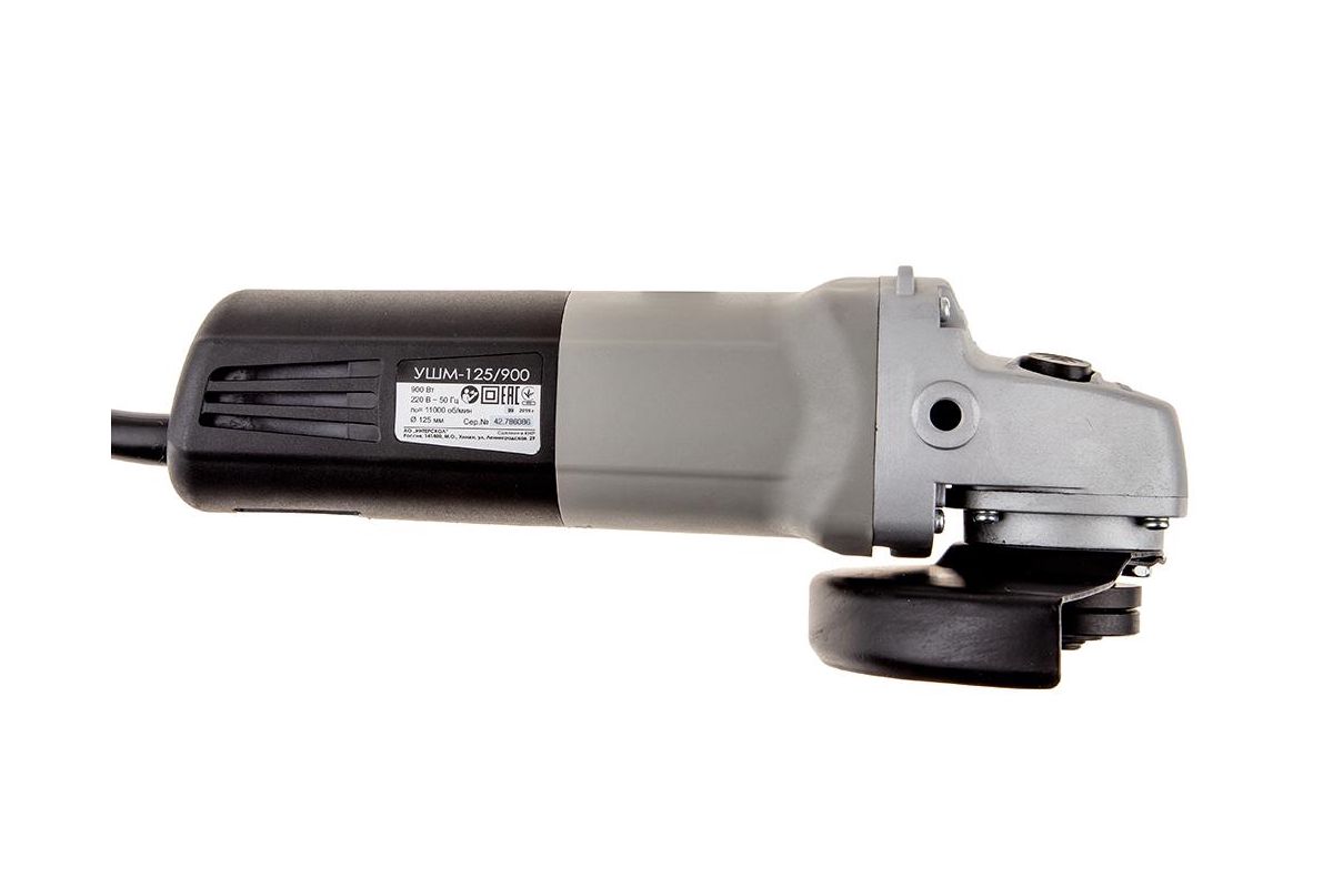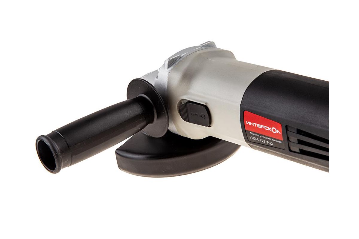 Дополнительная рукоятка УШМ Интерскол УШМ-125/900 568 позволяет крепко удерживать инструмент в различных пространственных положениях;