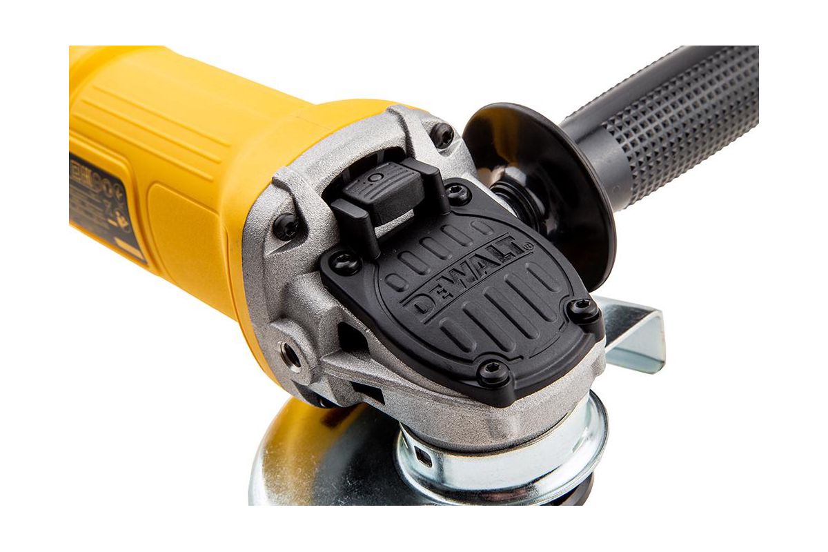 Угловая шлифмашина DeWalt DWE 4150 имеет небольшой диаметр корпуса и многопозиционную дополнительную рукоятку, что обеспечивает комфортную работу пользователя. Кнопка блокировки шпинделя расположена сверху. Специальный кожух - для защиты пользователя от искр и пыли. Самоотключающиеся щетки гарантируют защиту якоря от повреждения.
