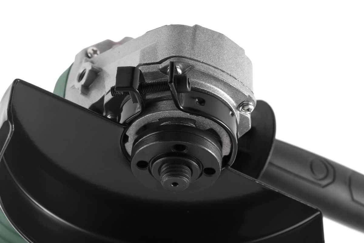 Кнопка блокировки предотвращает случайный пуск. Её нужно нажать прежде, чем включатель – так УШМ не запустится, если упадёт или её случайно заденут.