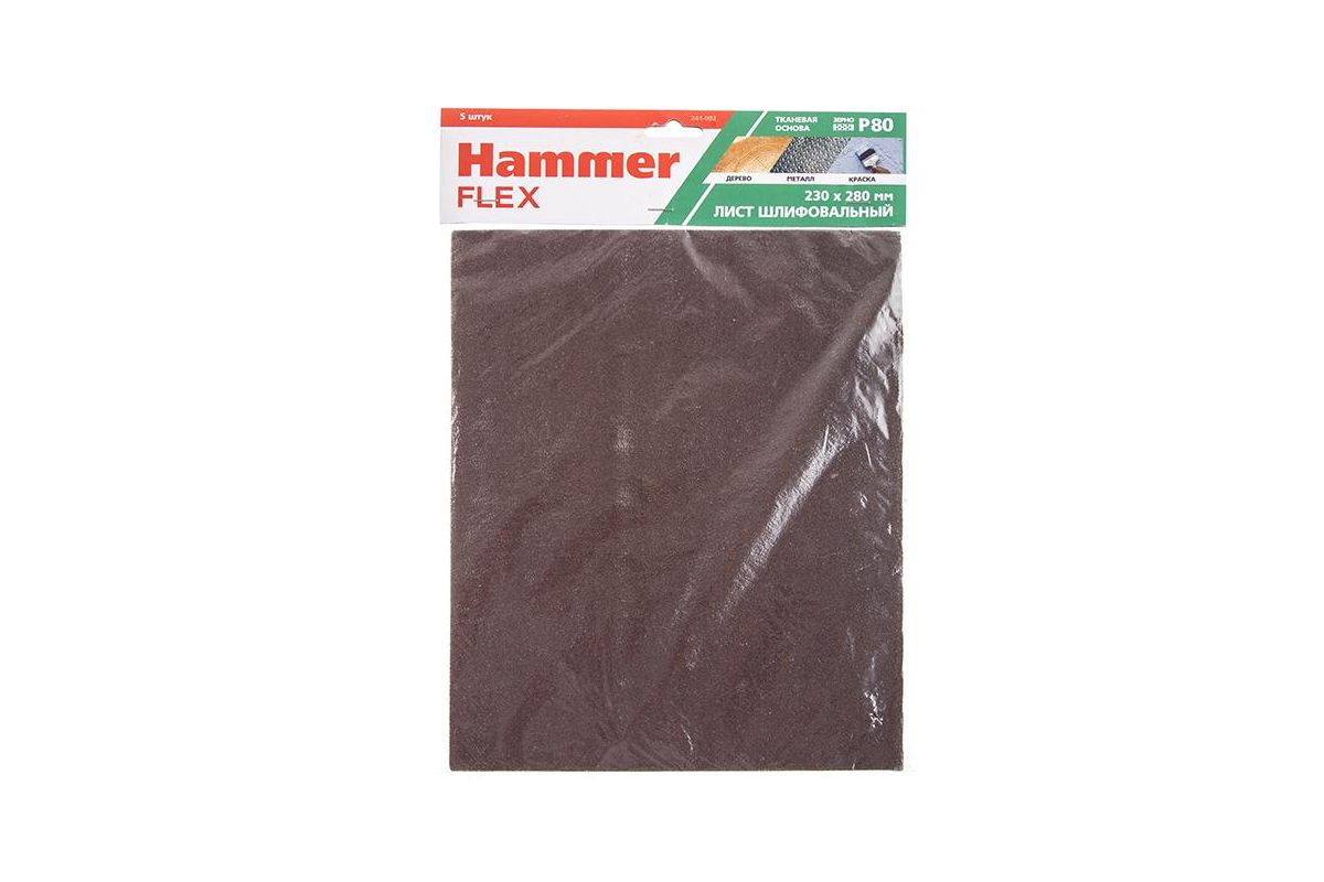 Листы шлифовальные Hammer Flex 230x280мм, P80 (5шт), тканевая основа