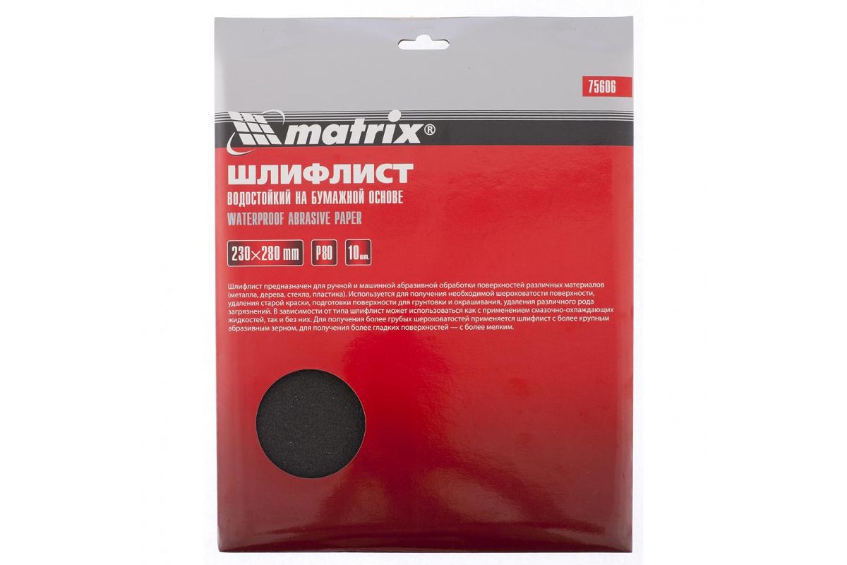 Шлифлист MATRIX 75606 на бумажной основе p 80.230 х 280мм 10шт водостойкий