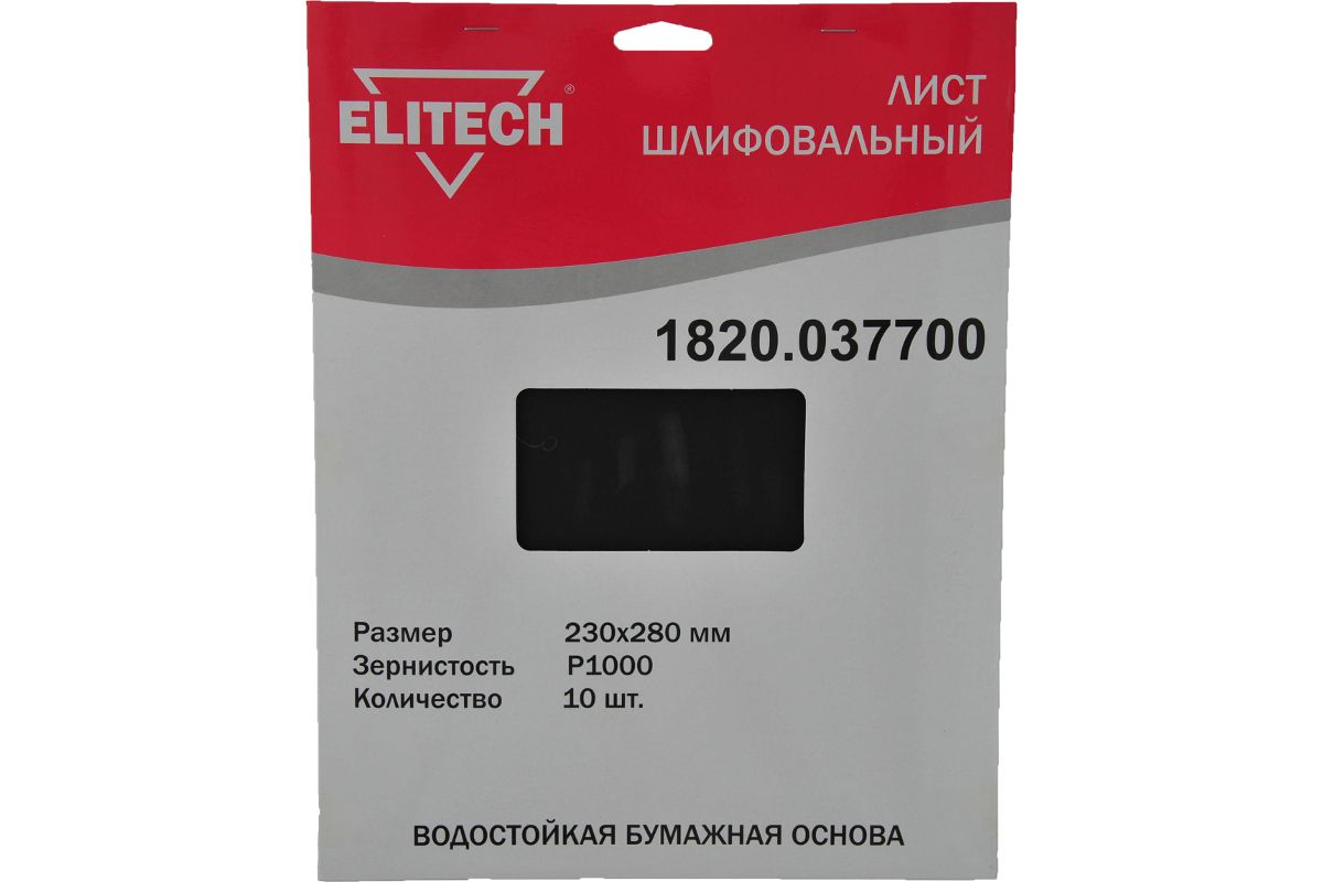 Лист шлифовалн ELITECH 1820.037700 Шлифлист,230х280мм,P1000,10шт,водостойкая бумажная основа