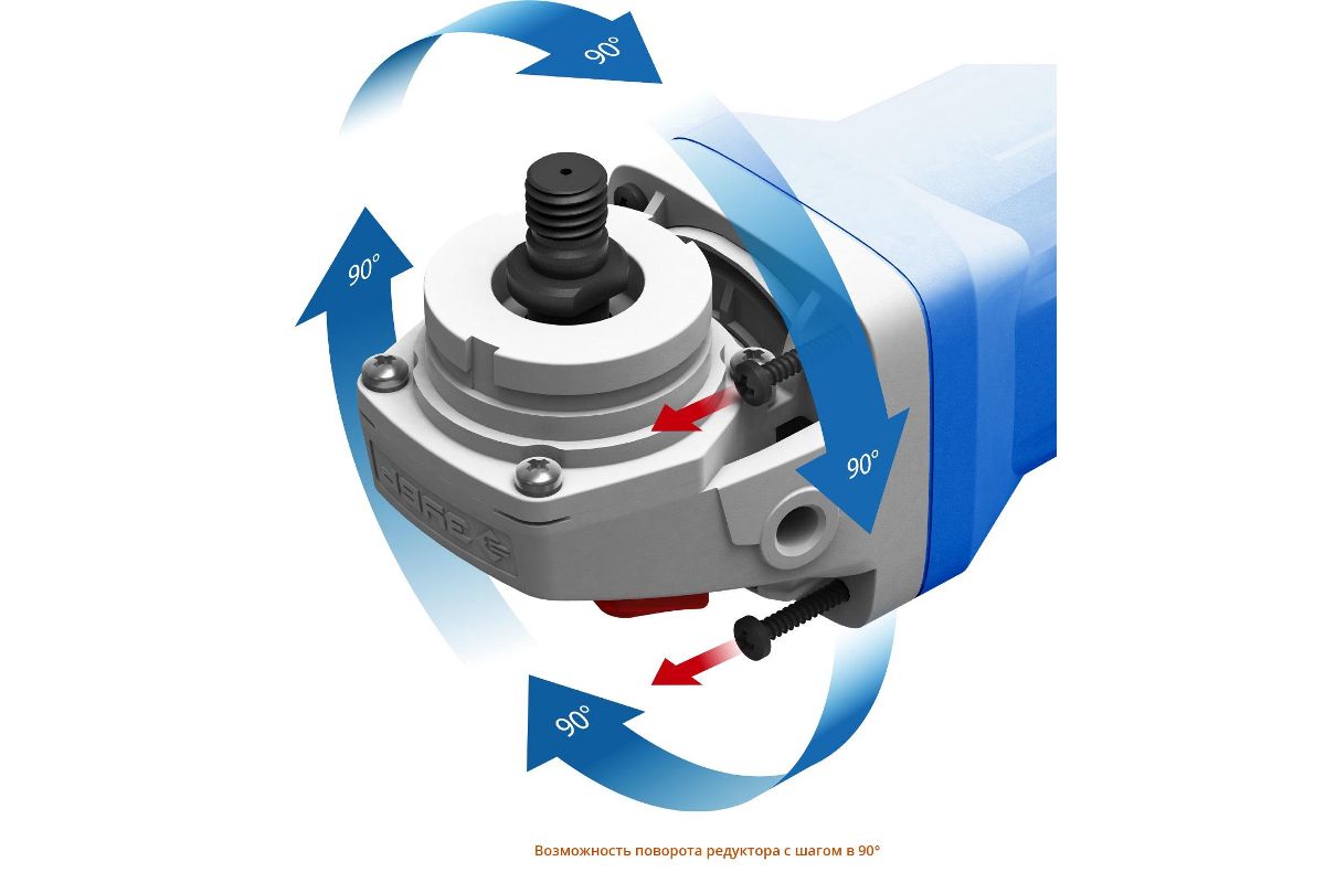 - Поворотная с шагом 90 град голова позволяет настроить изделие под левую руку или для резки;