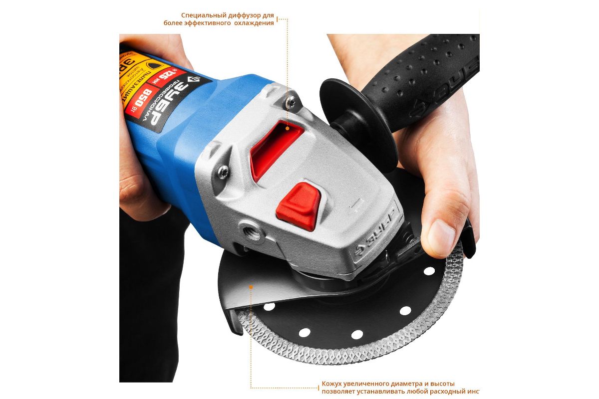 УШМ ЗУБР УШМ-П125-850 пылезащита, 125 мм, 11000 об/мин, 850 Вт