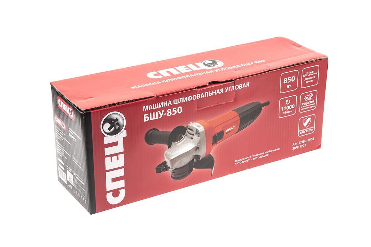 УШМ (болгарка) СПЕЦ БШУ-850 850Вт d круга 125мм картонная упаковка Шлифмашина угловая СПЕЦ БШУ-850, 850Вт, d круга 125мм, картонная упаковка