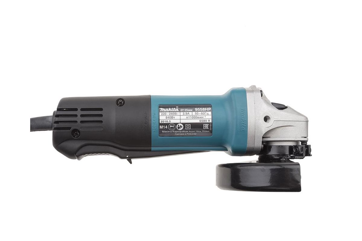 MAKITA 9558HPG – электрическая угловая шлифовальная машина для зачистки, шлифовки или резки заготовок из бетона или металла. Мощность 840 Вт. Диаметр круга 125 мм. Пригодится для ремонтных или строительных работ дома, в автомастерской или на даче.