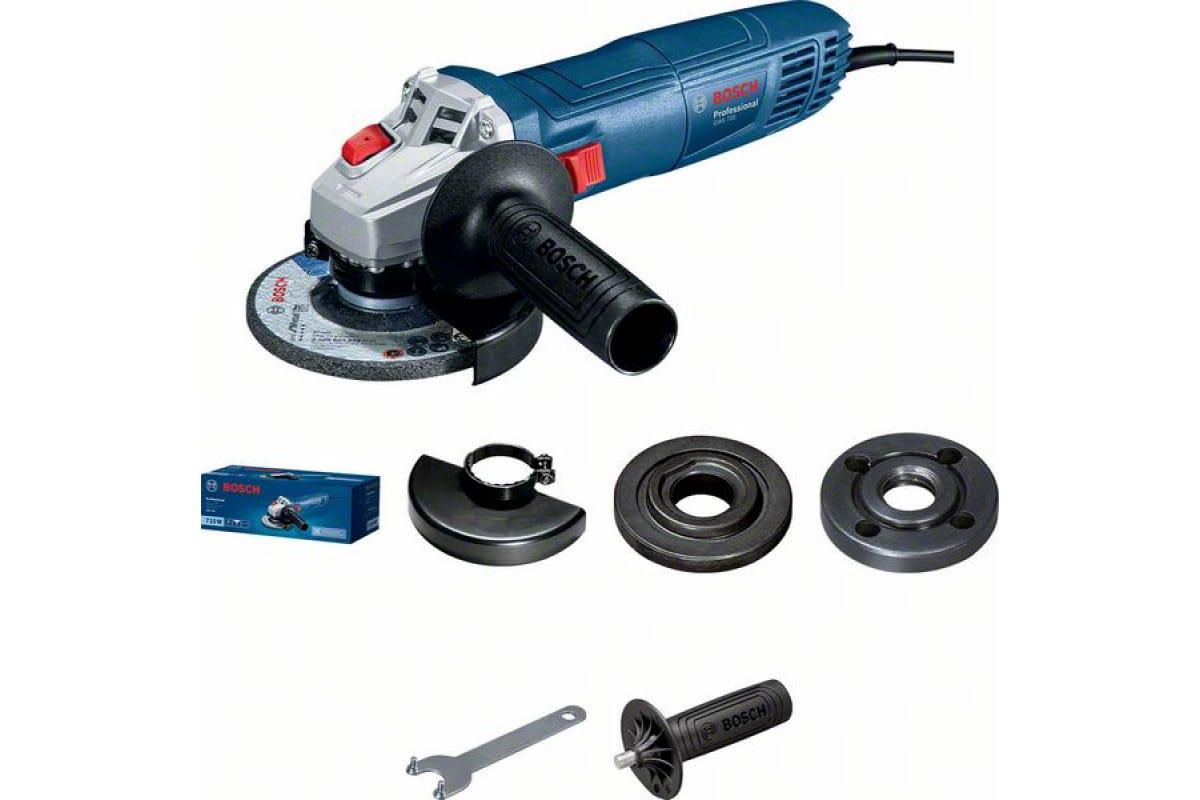 GWS 700, дополнительная рукоятка, защитный кожух, ключ, зажимной фланец и гайка, картонная коробка