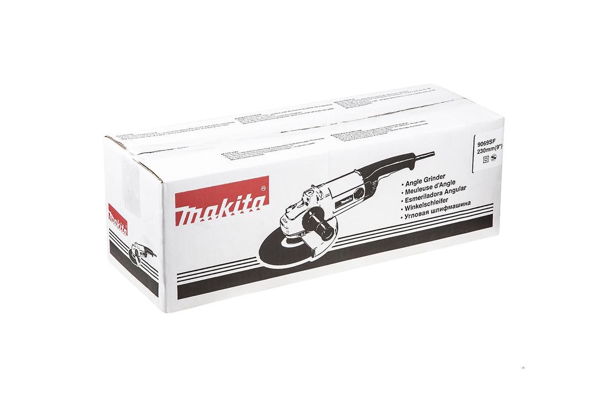 Углошлифовальная машина MAKITA 9069SF ориентирована на выполнение больших объемов работ и может быть использована на производстве. Пылезащищенный электродвигатель мощностью 2 кВт плавно раскручивает шпиндель до скорости 6600 об/мин. Максимальный диаметр дисков 230 мм, чашечных щеток – до 110 мм. При габаритной длине 458 мм инструмент весит 4,2 кг, длина сетевого шнура 2,5 м.