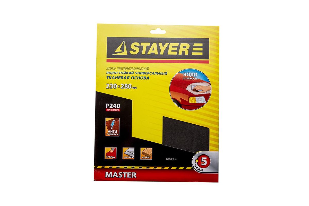 Лист шлифовальный STAYER MASTER 35435-240_z01 унив.тканевая основа водост.230х280мм P240 5шт.