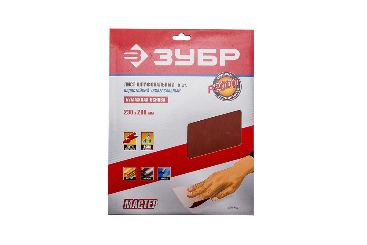 Лист шлифовальный ЗУБР 35520-2000 МАСТЕР на бумажной основе водостойкий P2000 230х280мм 5шт.
