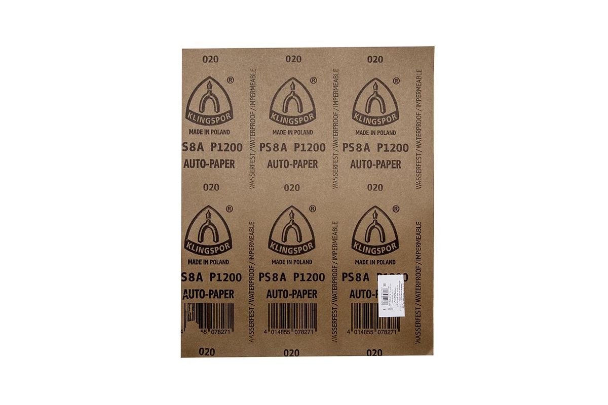 Эластичная, водостойкая шлифовальная бумага PS 8 A с зерном карбид кремния, особенно подходит для обработки краски, лака, пластиков. Широко применяется в мебельной промышленности, для кузовного ремонта и лакокрасочных производствах. Производитель завод Klingspor Польша.