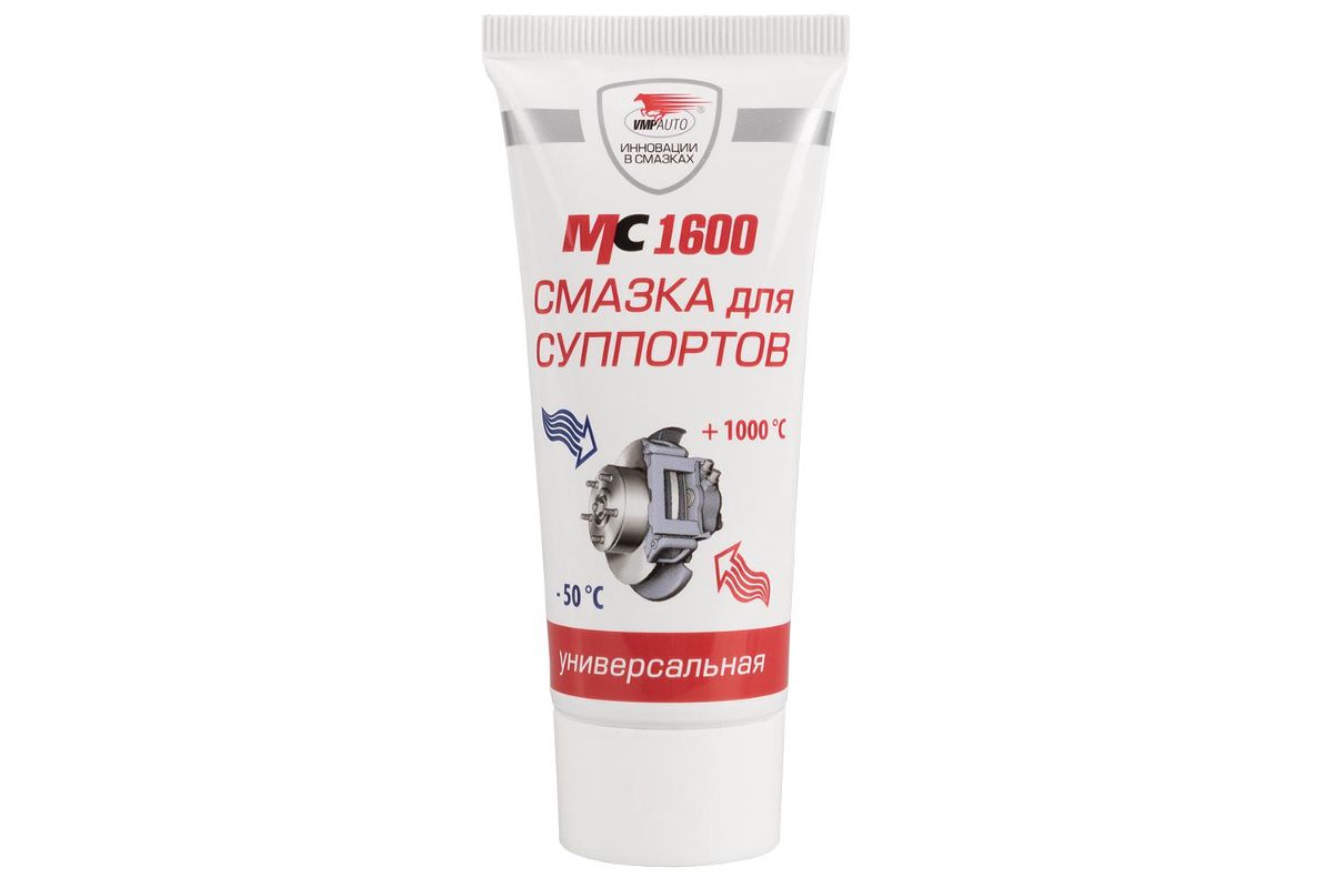 МС 1600 – смазка для суппортов (универсальная) на синтетической основе. Выдерживает экстремальные температуры до +1000°С. Препятствует неравномерному износу колодок.