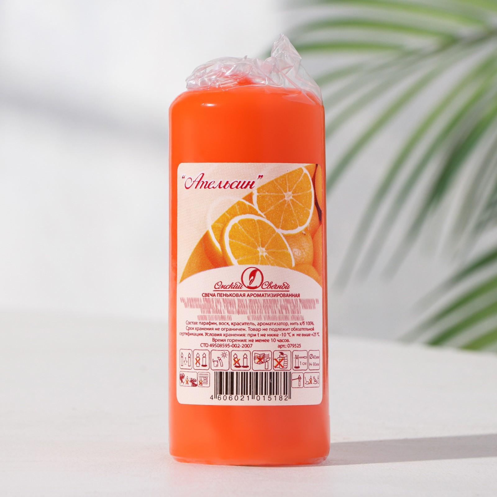 Свеча - цилиндр ароматическая "Апельсин", 4х9 см, 11 ч, 88 г, оранжевая