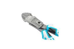Усиленные бокорезы Gross 17575, 215 мм, с трехкомпонентными рукоятками, предназначены для разрезания кабелей, проводов, проволоки, рояльных струн и т.д. Усиленная конструкция позволяет бокорезам перекусывать не только алюминий, медь, пластмассу, но и более жесткие материалы из стали диаметром до 3,5 мм. Встроенный рычажный механизм и смещенный непосредственно к режущим кромкам шарнир увеличивают эффективность реза на 50%.