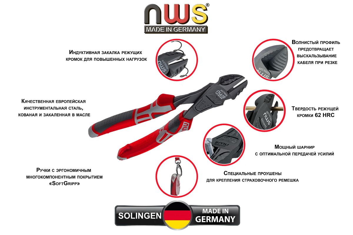 Бокорезы NWS 137-69-200 200мм силовые, трехкомпонентная рукоятка