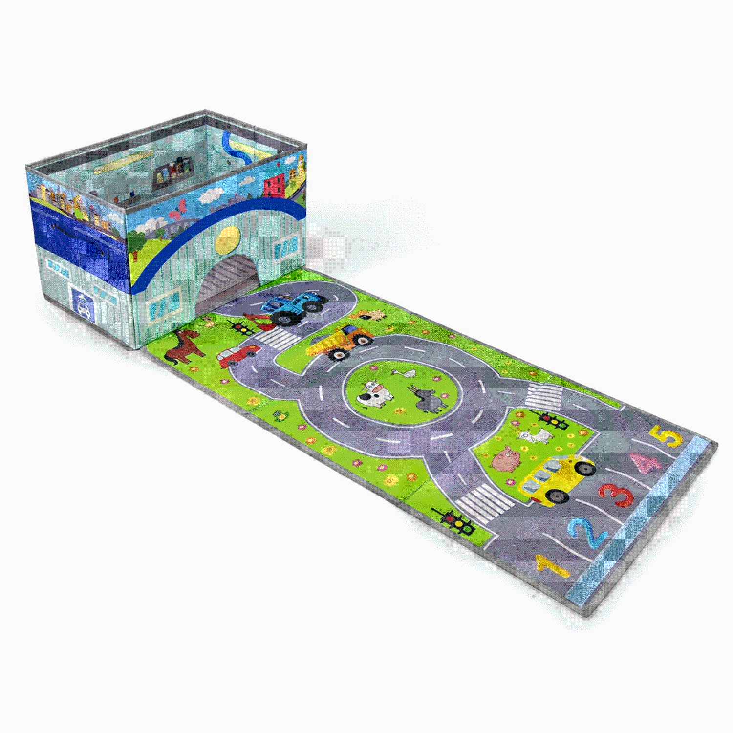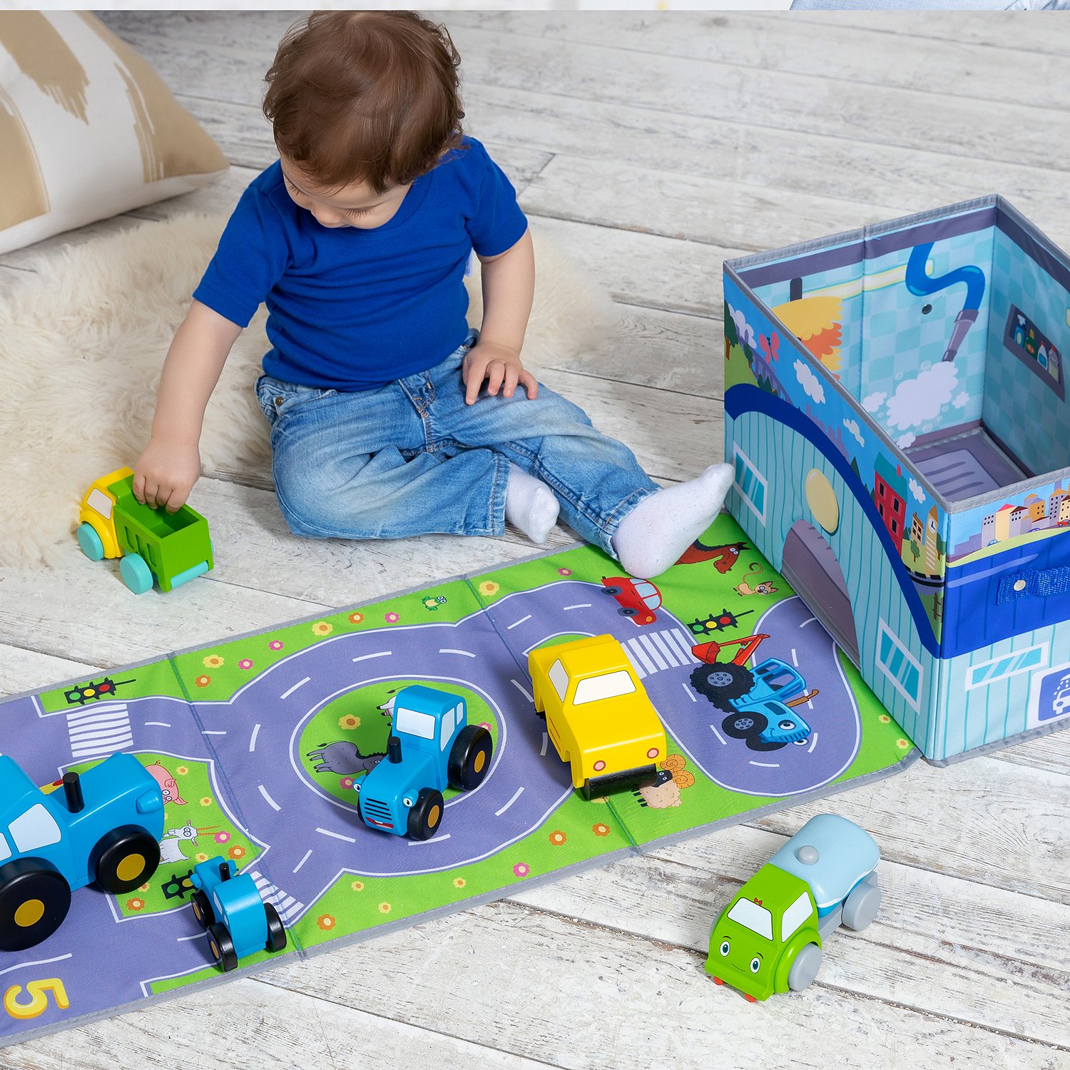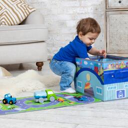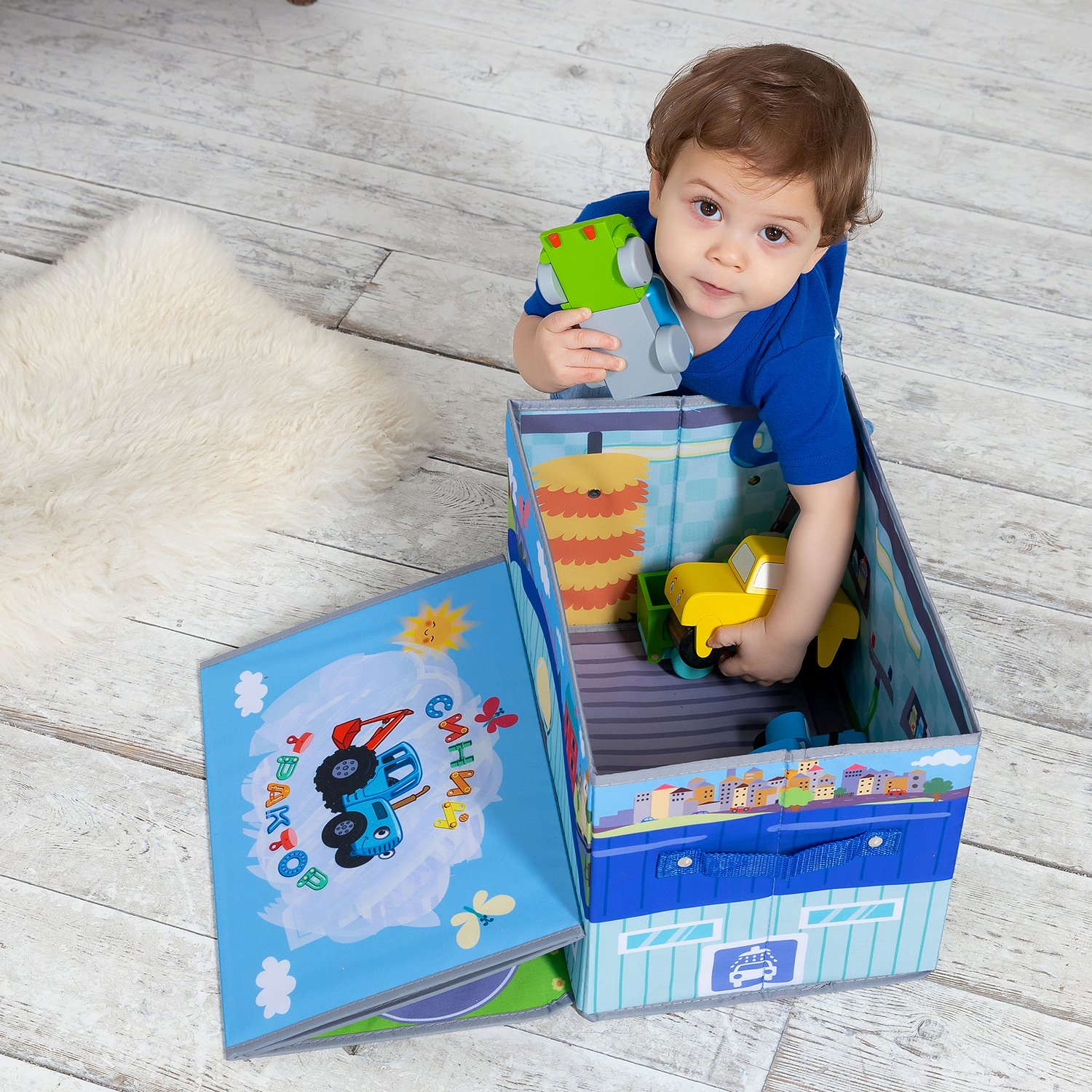 Контейнер-бокс МУЛЬТИФАН для игрушек с крышкой детский Синий трактор с игровым полем BTMF006