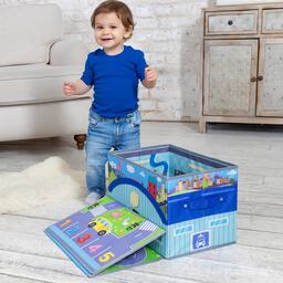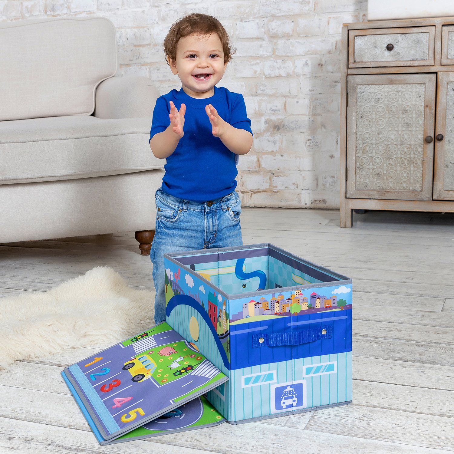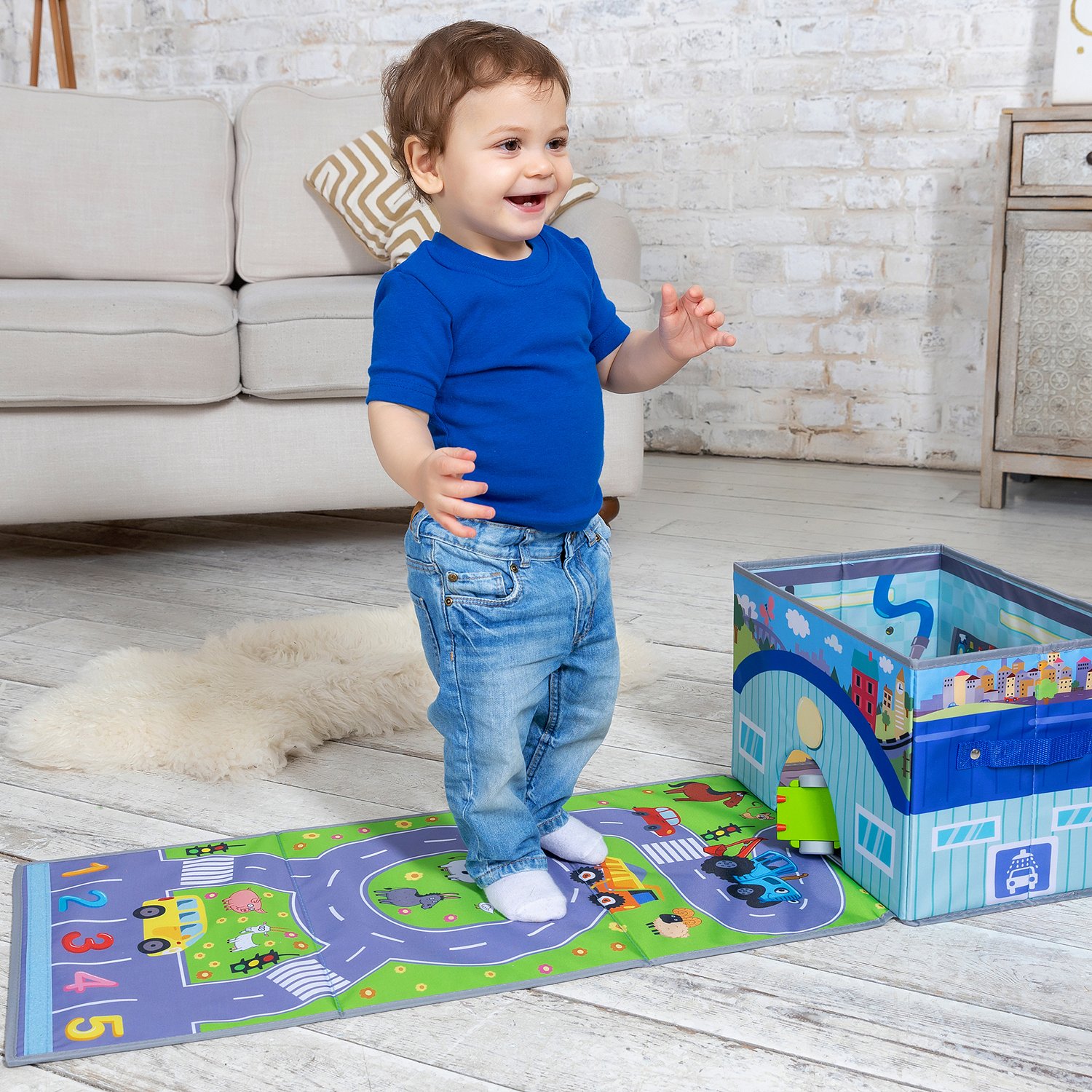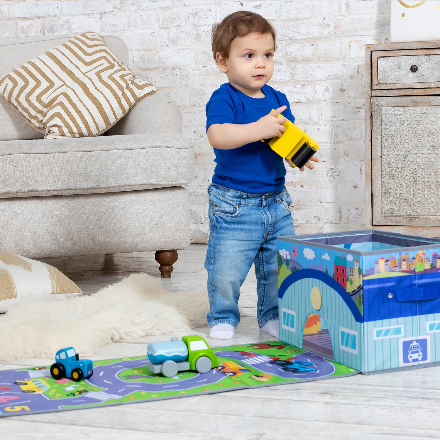 Контейнер-бокс МУЛЬТИФАН для игрушек с крышкой детский Синий трактор с игровым полем BTMF006