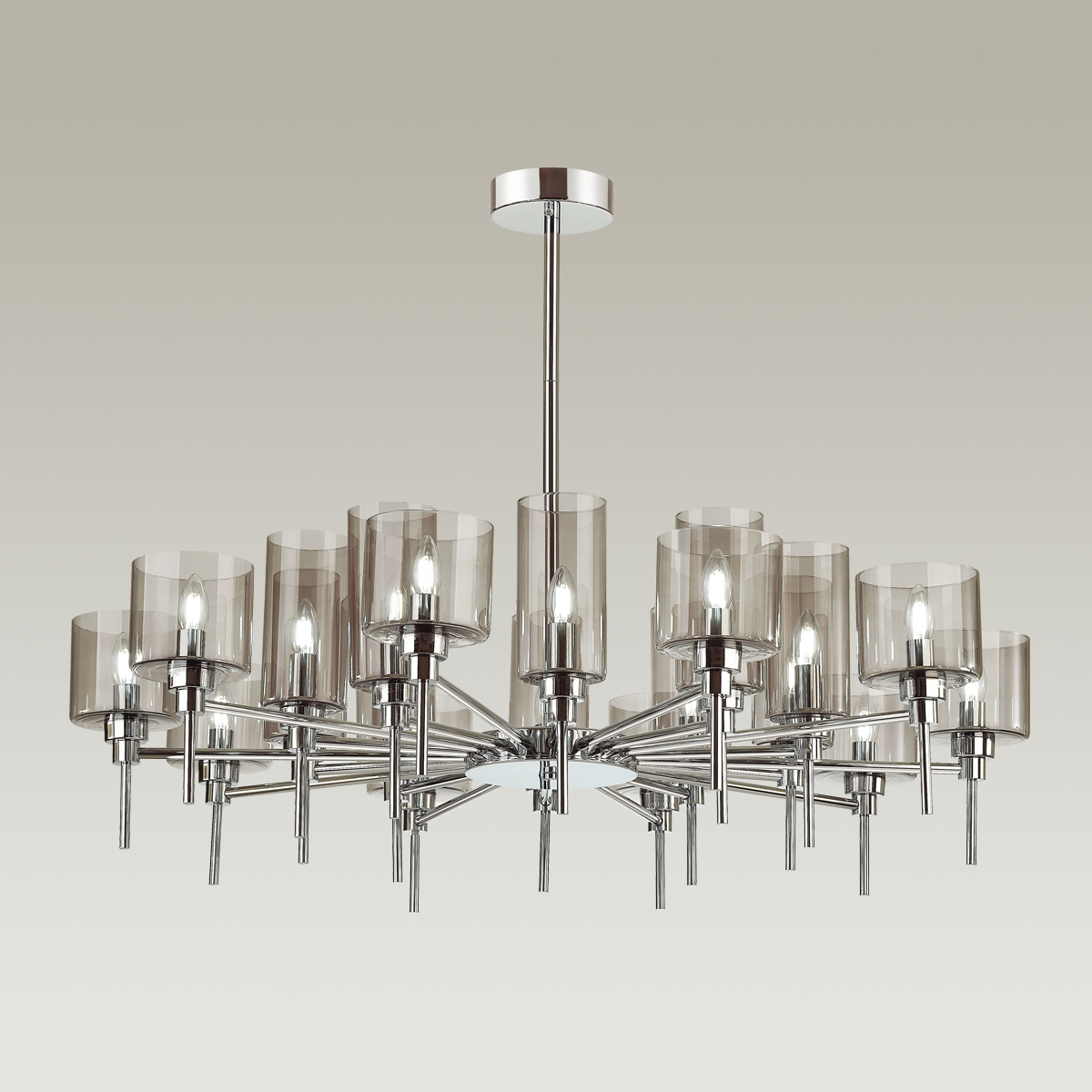 Потолочная люстра Diatra 4688/20 — модель от итальянской компании Odeon Light. Основа люстры выполнена из металла цвета хрома, плафон из стекла прозрачного, серого цвета. Люстра будет хорошо смотреться в гостиной, кафе, холле, офисе и удачно впишется в интерьер в стиле модерн. Модель имеет 20 плафонов и 20 лампочек, оснащена цоколем E14 с максимальной мощностью лампочки 40 Вт и рассчитана на освещение площади до 40 кв. м. Диаметр модели — 113,6 см. Степень защиты от влаги и пыли — IP20. Люстра устанавливается на монтажную пластину и поддерживает подключение диммера. Закажите потолочную люстру 4688/20 по лучшей цене с быстрой доставкой в интернет-магазине Lu.ru!