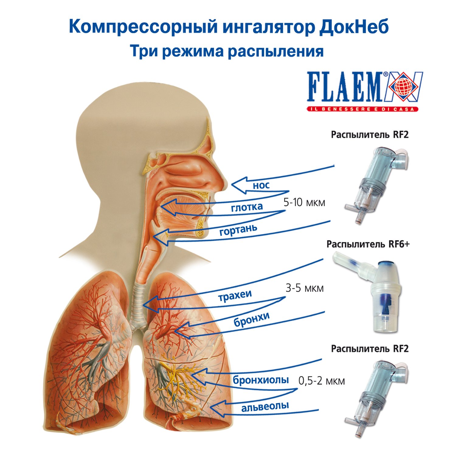 Ингалятор FLAEM NUOVA Компрессорный трёхрежимный ДокНеб Италия NA14P01