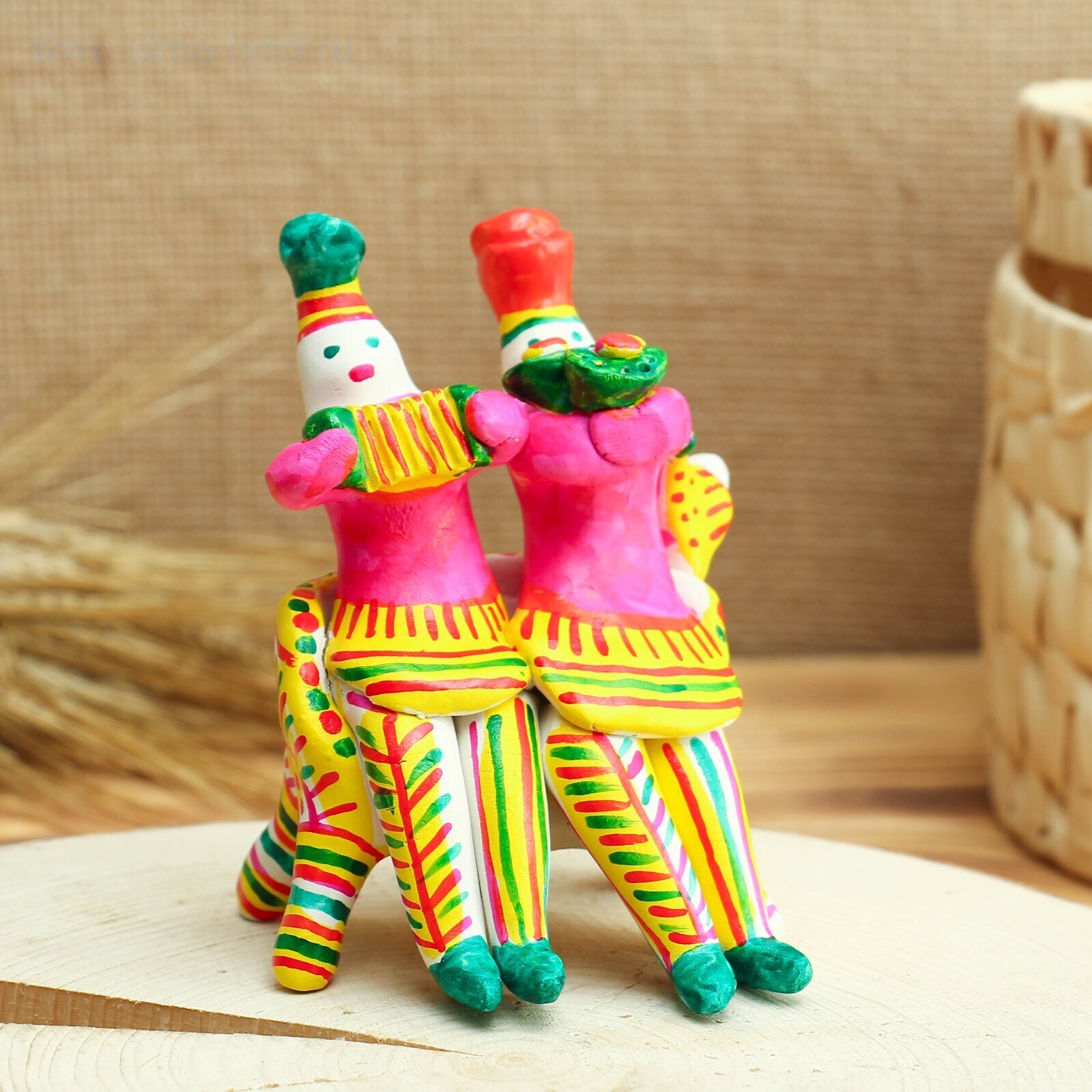 Филимоновский промысел зародился в деревне Филимоново Тульской области примерно 700 лет назад. Из особой глины — синики — девочки и бабушки лепили свистульки и продавали их на базаре. Вырученные деньги становились приданым для девушек, таких невест называли свистульками.