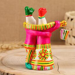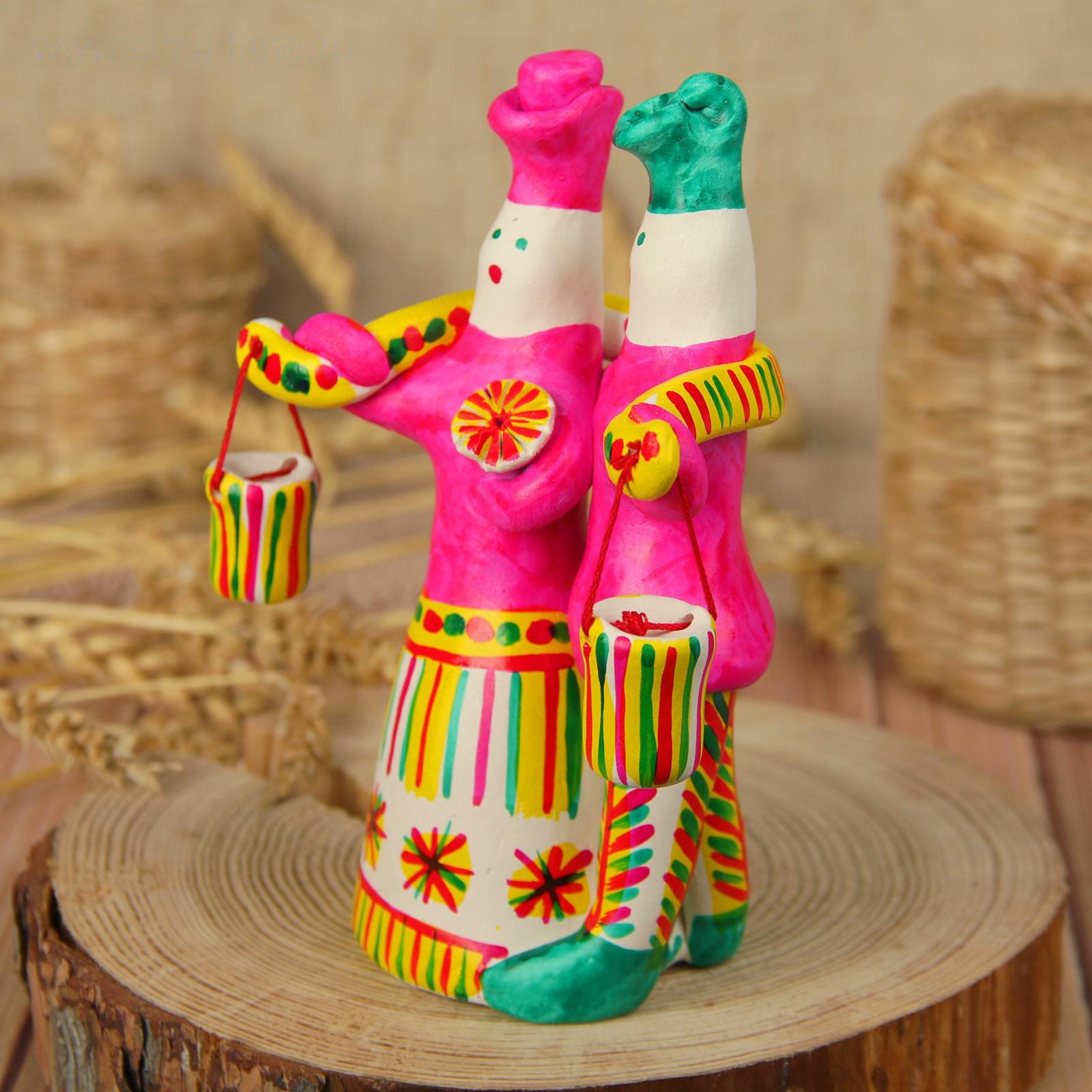 Свою затейливую форму игрушка получает в процессе сушки: глина трескается, а мастер разглаживает неровности. Обожжённый материал белеет и не требует дополнительной грунтовки. В росписи мастера используют три цвета: зелёный, жёлтый и малиновый.