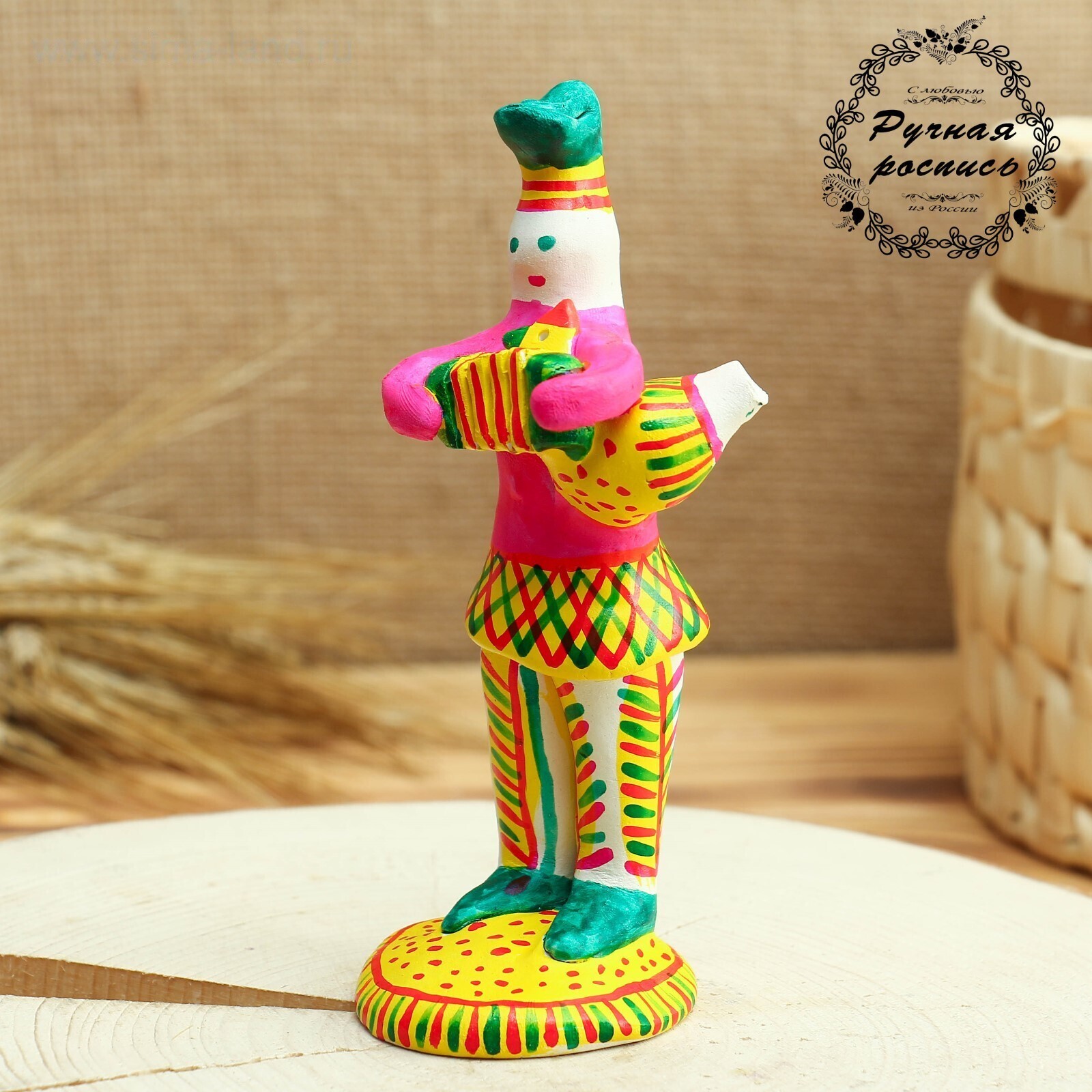 Филимоновская игрушка «Солдат с гармошкой и со свистулькой»