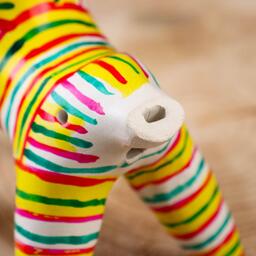 Свою затейливую форму игрушка получает в процессе сушки: глина трескается, а мастер разглаживает неровности. Обожжённый материал белеет и не требует дополнительной грунтовки. В росписи мастера используют три цвета: зелёный, жёлтый и малиновый.