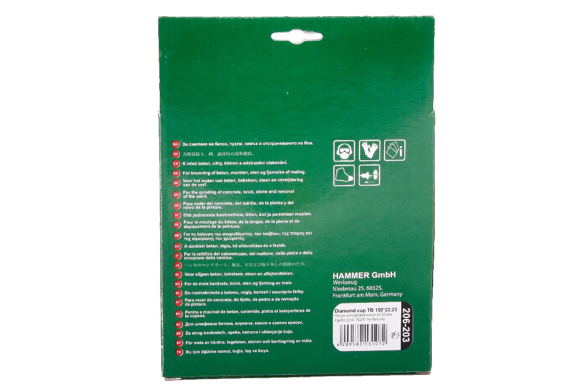 Чашка шлифовальная HAMMER Ф150х22мм по бетону (CUP TB)