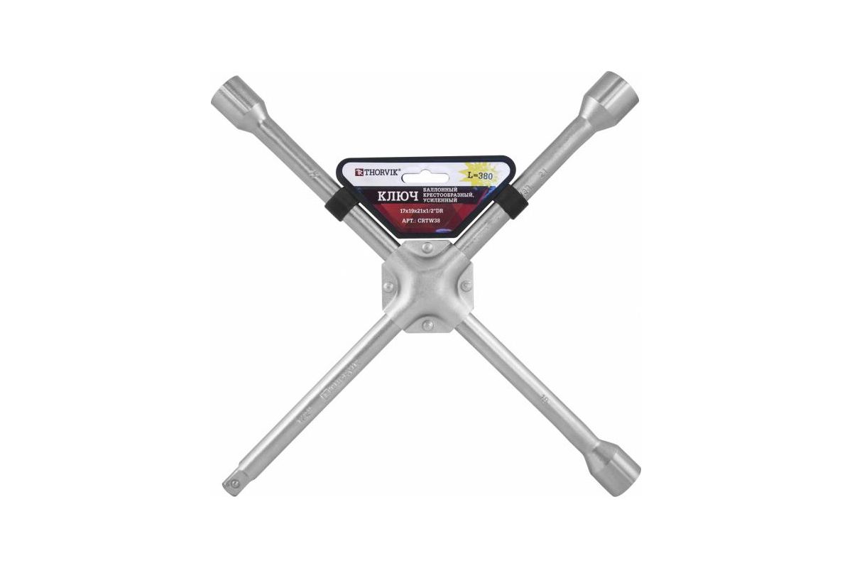 Ключ баллонный THORVIK CRTW38 крестообразный, усиленный, 17х19х21x1/2''DR, 380 мм Ключ баллонный крестообразный, усиленный, 17х19х21x1/2''DR, 380 мм
