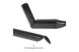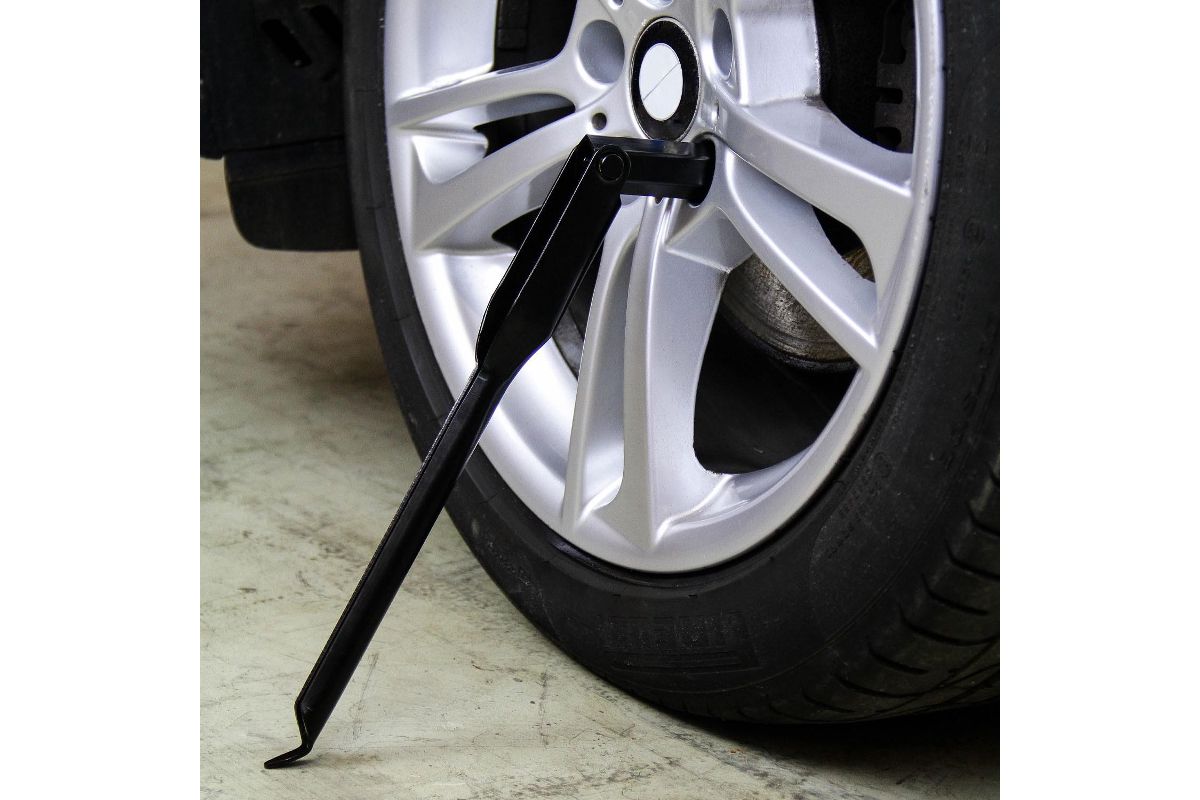 Ключ баллонный 19 мм со складной рукояткой. Складная рукоятка до 30 см. Встроенное приспособление для снятия колпаков. Материал: сталь. Цвет: чёрный. Вес: 610 гр.