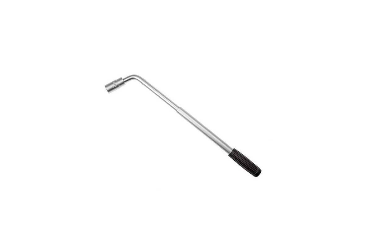 Телескопическая конструкция, увеличивая длину рычага, позволяет значительно увеличить усилие при отворачивании прикипевшего крепежа. Ключ укомплектован двусторонней головкой 17х19 мм.