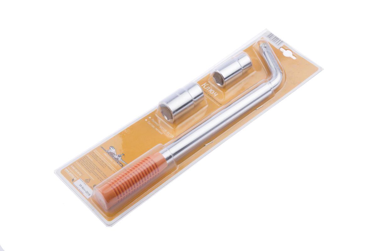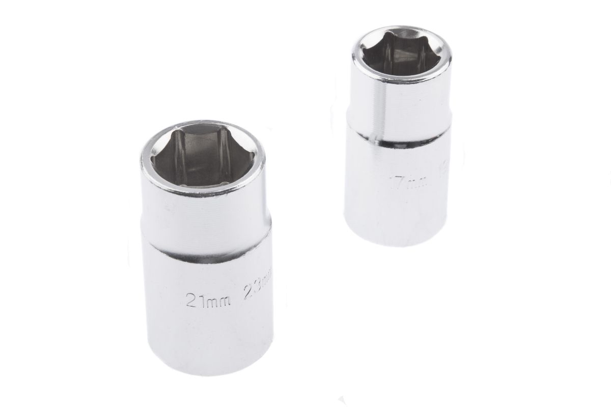 В комплект входят две двухсторонние головки на 17/19 и 21/23 мм. Головки подходят для самых популярных размеров колёсного крепежа.