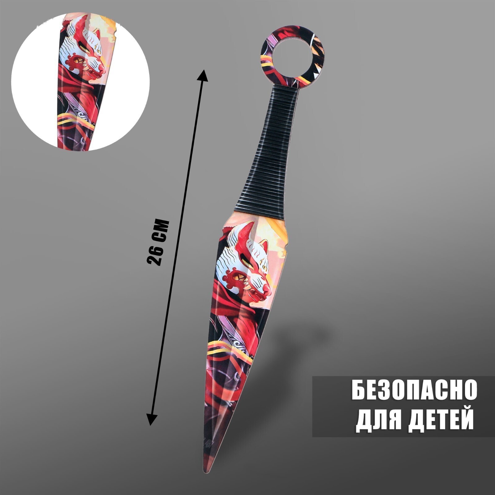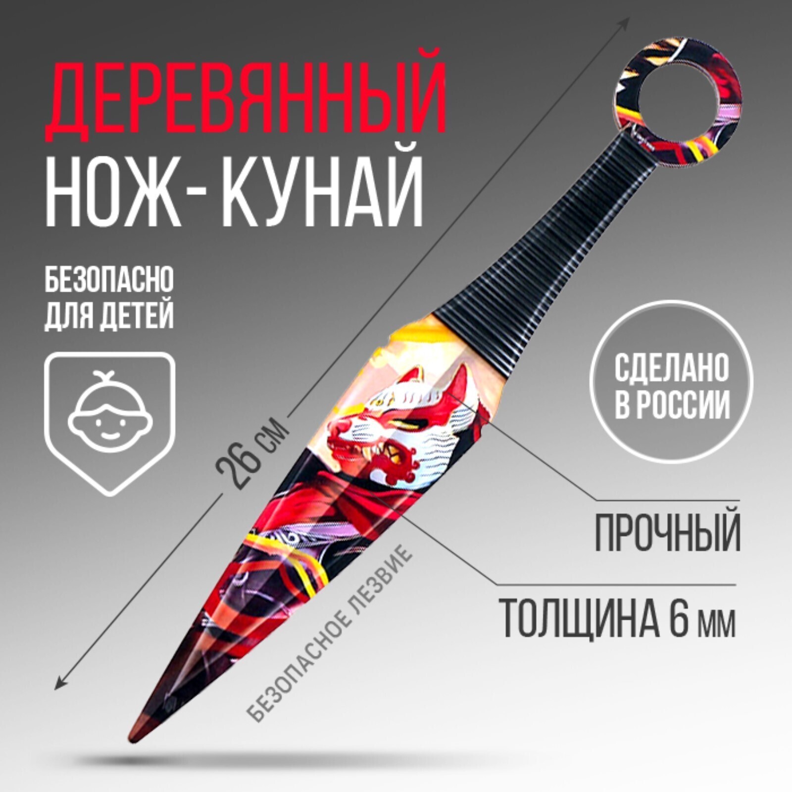 Нож кунай из дерева не является холодным оружием, он изготовлен из фанеры высокого качества. Преимущество деревянного ножа в его прочности - он с усиленной ручкой в несколько слоёв. На детскую игрушку нанесен двухсторонний рисунок. Стильный дизайн игрушечного ножа, а также его форма притягивают внимание. О веселой и динамичной игре мальчиков можно не беспокоиться - у них в руках безопасное оружие. Сувенирный нож не имеет острых краёв и не может посадить занозу или нанести вред. Нож игрушка тщательно отшлифован, клинок не заточен! Идеален как дополнение к подарку на 23 февраля, Новый Год или день рождения.