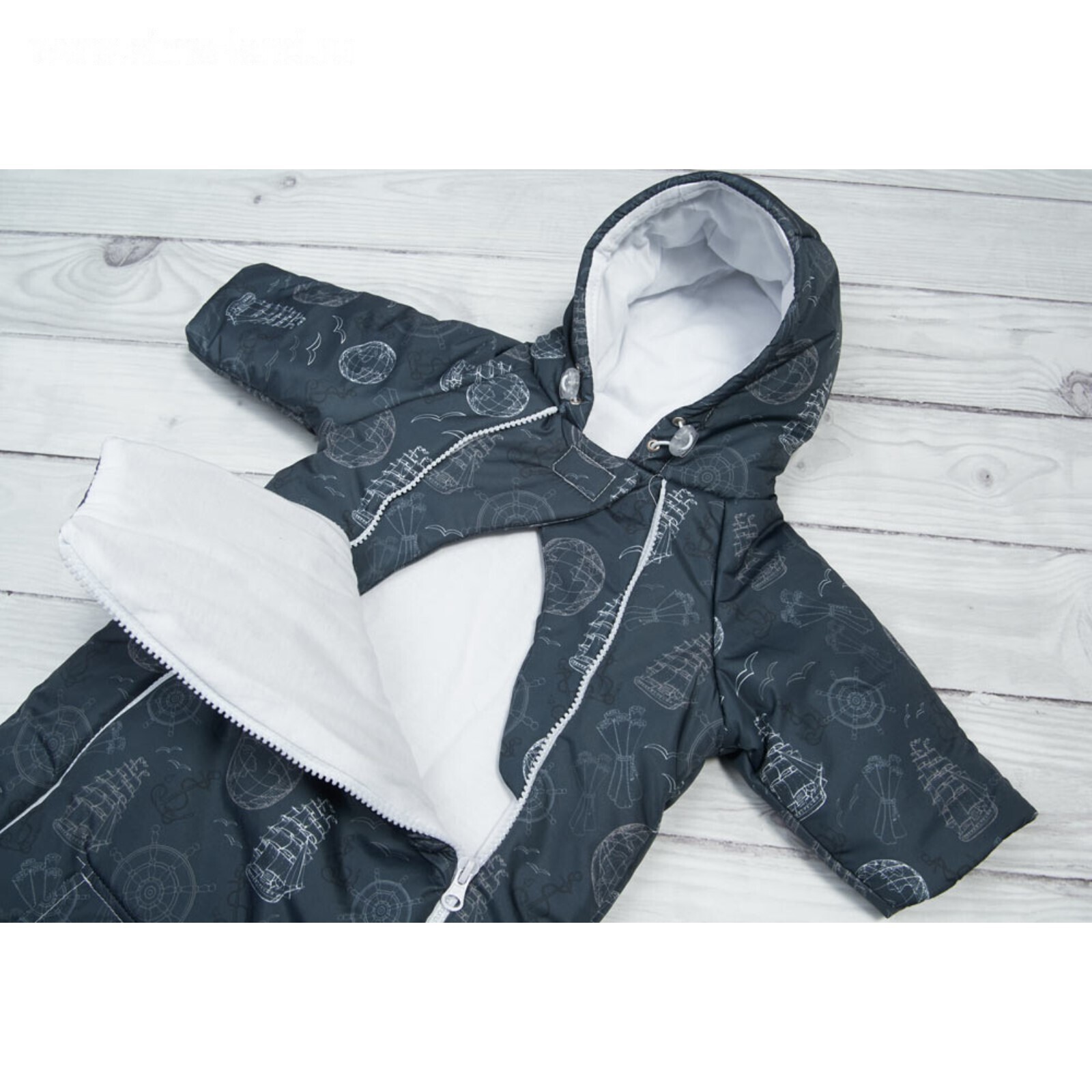 Для защиты от ветра и сквозняков на капюшоне есть специальные утяжки, а на рукавах отвороты. Непродуваемый слой сверху, утеплитель и хлопковый слой подарят карапузу уют и комфорт.