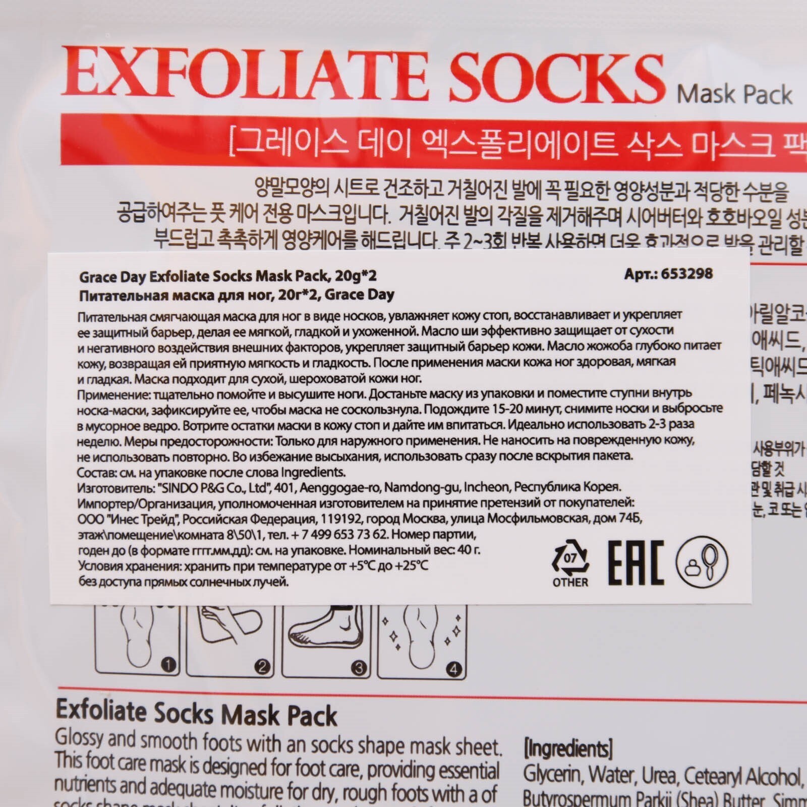 Питательная маска Grace Day, для ног, 20 г, 2 шт.