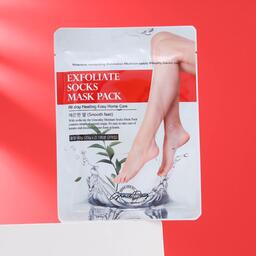 Применение: тщательно помойте и высушите ноги. Достаньте маску из упаковки и поместите ступни внутрь носка-маски, зафиксируйте ее, чтобы маска не соскользнула. Подождите 15-20 минут, снимите носки и выбросьте в мусорное ведро. Вотрите остатки маски в кожу стоп и дайте им впитаться. Идеально использовать 2-3 раза неделю.