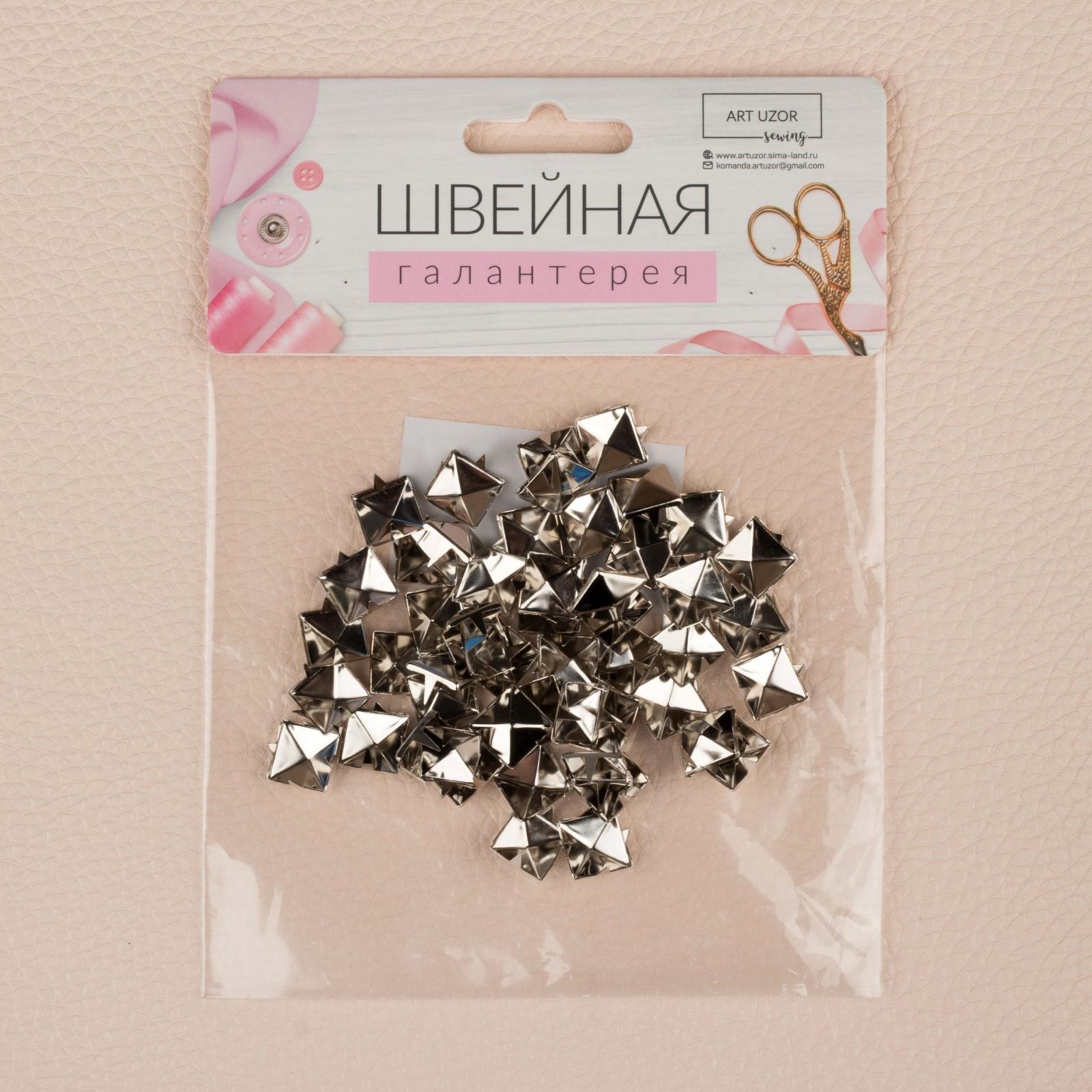 Хольнитен «Пирамида», 11 × 11 мм, 4 крепления, 50 шт, цвет серебряный