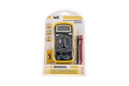 IEK Master MAS830L — бытовой цифровой мультиметр в корпусе с двойной изоляцией весом всего 346 г. Отличительные черты — большой наглядный дисплей на 4 цифры и высокая скорость измерения силы тока, напряжения и сопротивления. Наглядная индикация служит для отображения перегрузки, полярности и разряда батареи. Для защиты от перепадов напряжения предусмотрен предохранитель 0,5А/250 В.