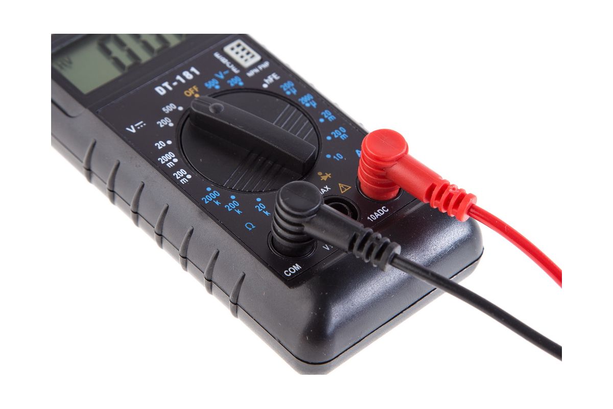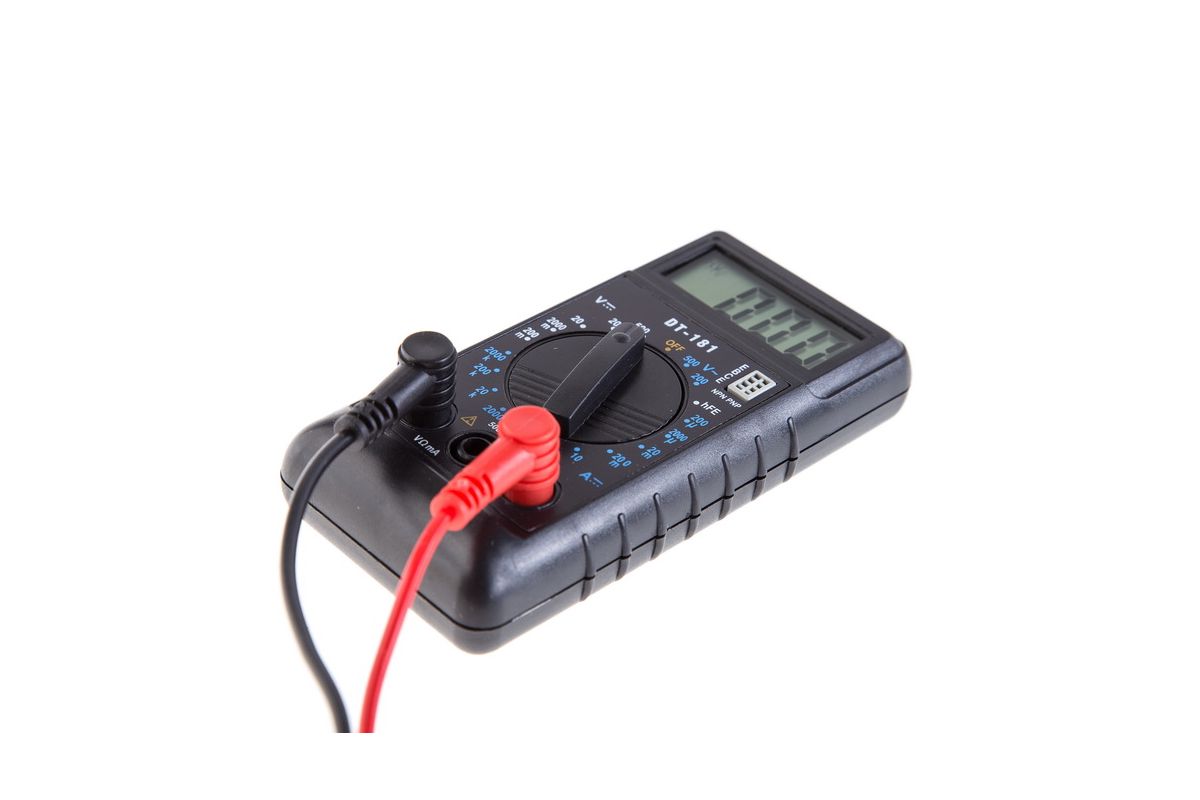 Цифровой мультиметр РЕСАНТА DT181 – это высокоточный измерительный прибор, который используется для измерения постоянного и переменного напряжения, постоянного тока и сопротивления, а также для проверки диодов и транзисторов. Управляется 20-позиционным переключателем пределов. Прибор защищен от перегрузки, надежен и прост в управлении.