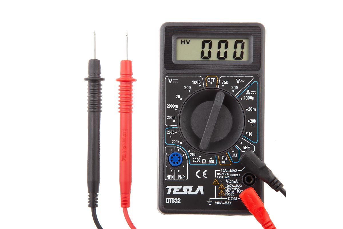 Мультиметр Tesla DT832 предназначен для измерений постоянного и переменного напряжения и постоянного тока, сопротивления, проверки диодов, транзисторов, а также прозвонки сети (со звуком).