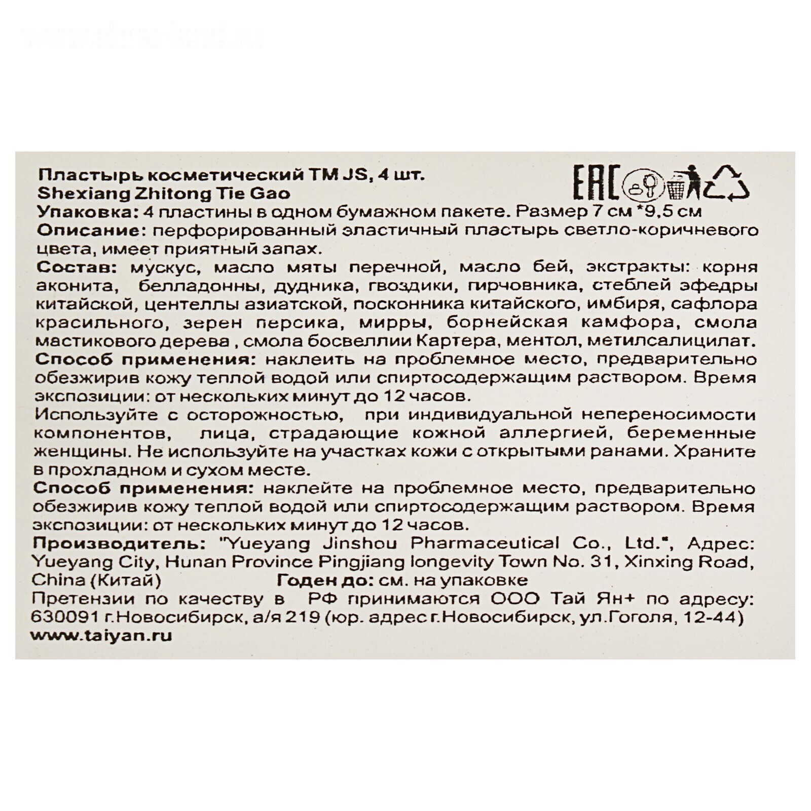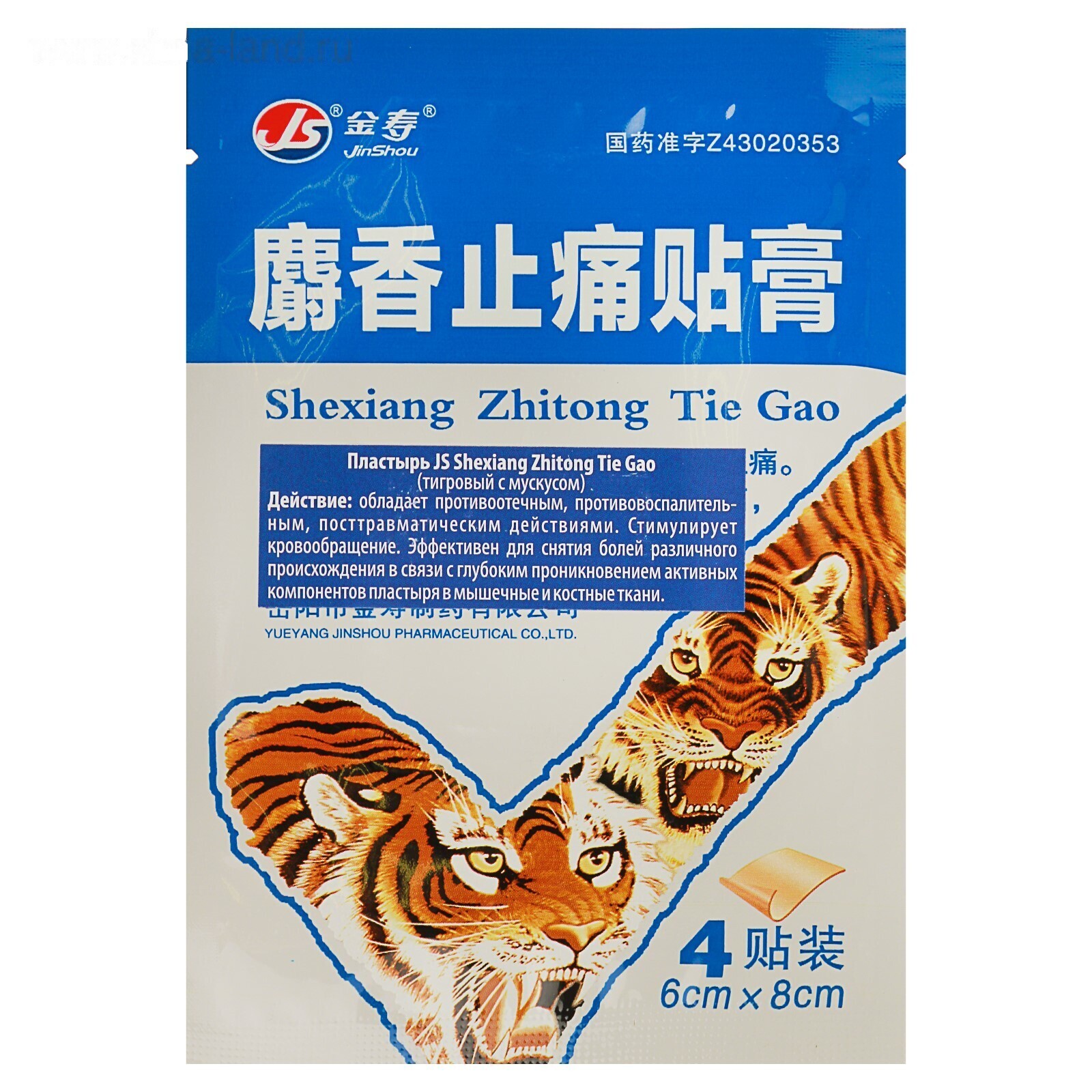 Пластырь TaiYan JS Shexiang Zhitong Tie Gao, тигровый с мускусом, 4 шт