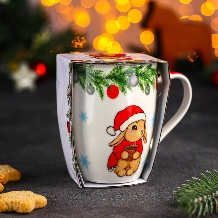 Кружка Доляна "Новый год. Зайка с какао", 350 мл, в упаковке