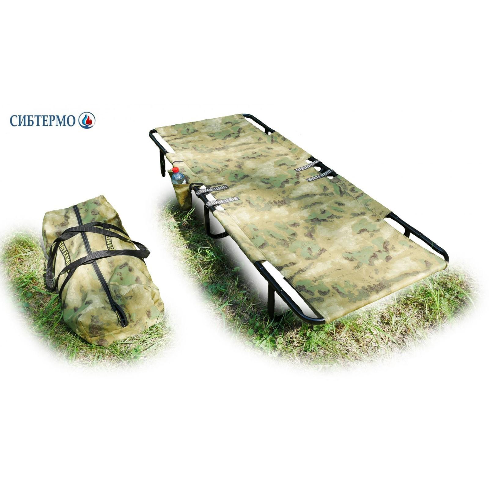 Раскладушка (походная кровать) разборная в чехле, основа которой изготовлена из стальной трубы диаметром 25 мм, окрашена порошковой краской.