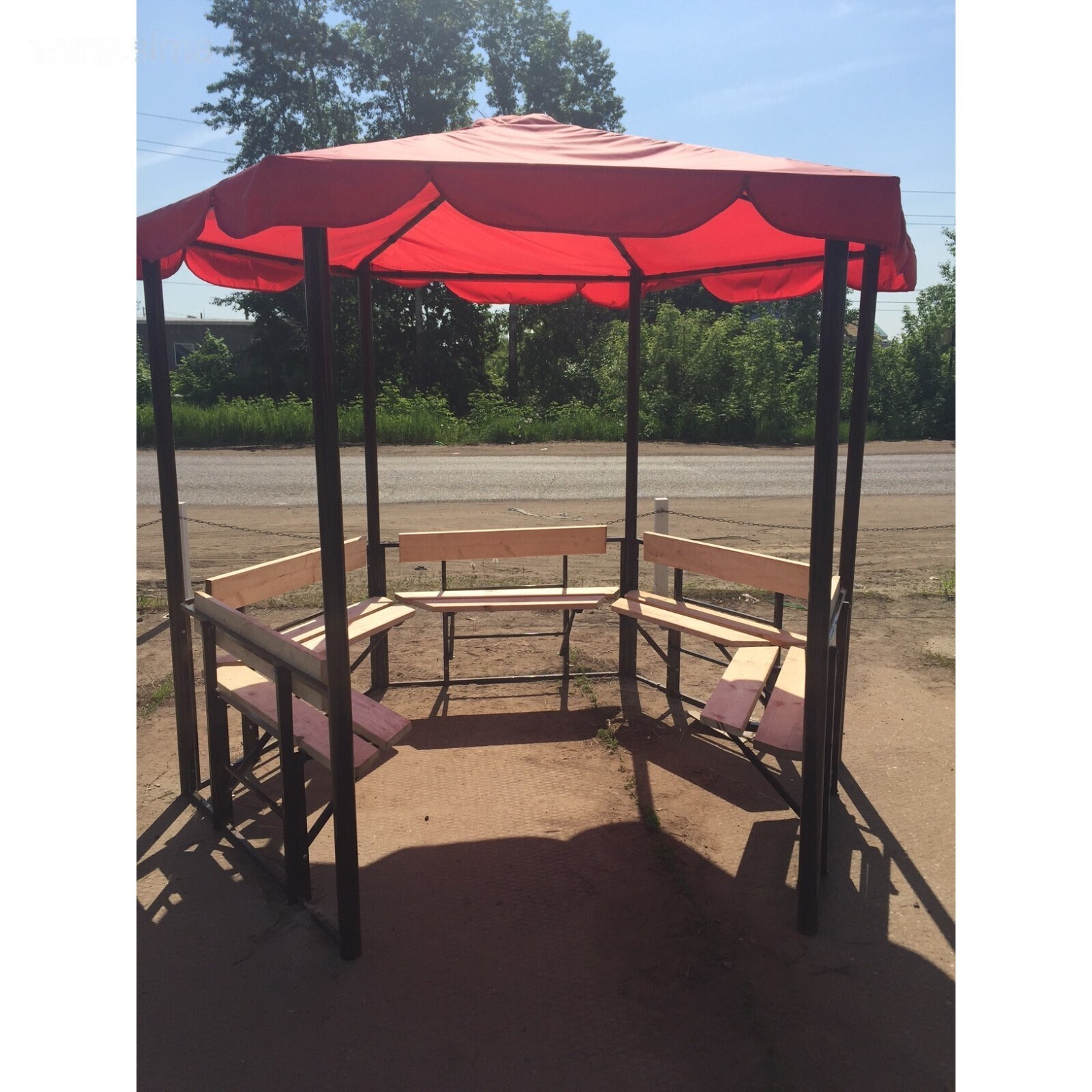 Беседка разборная "Семейная" d-250 см, h-235 см, с 5- ю скамейками и красной крышей