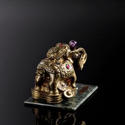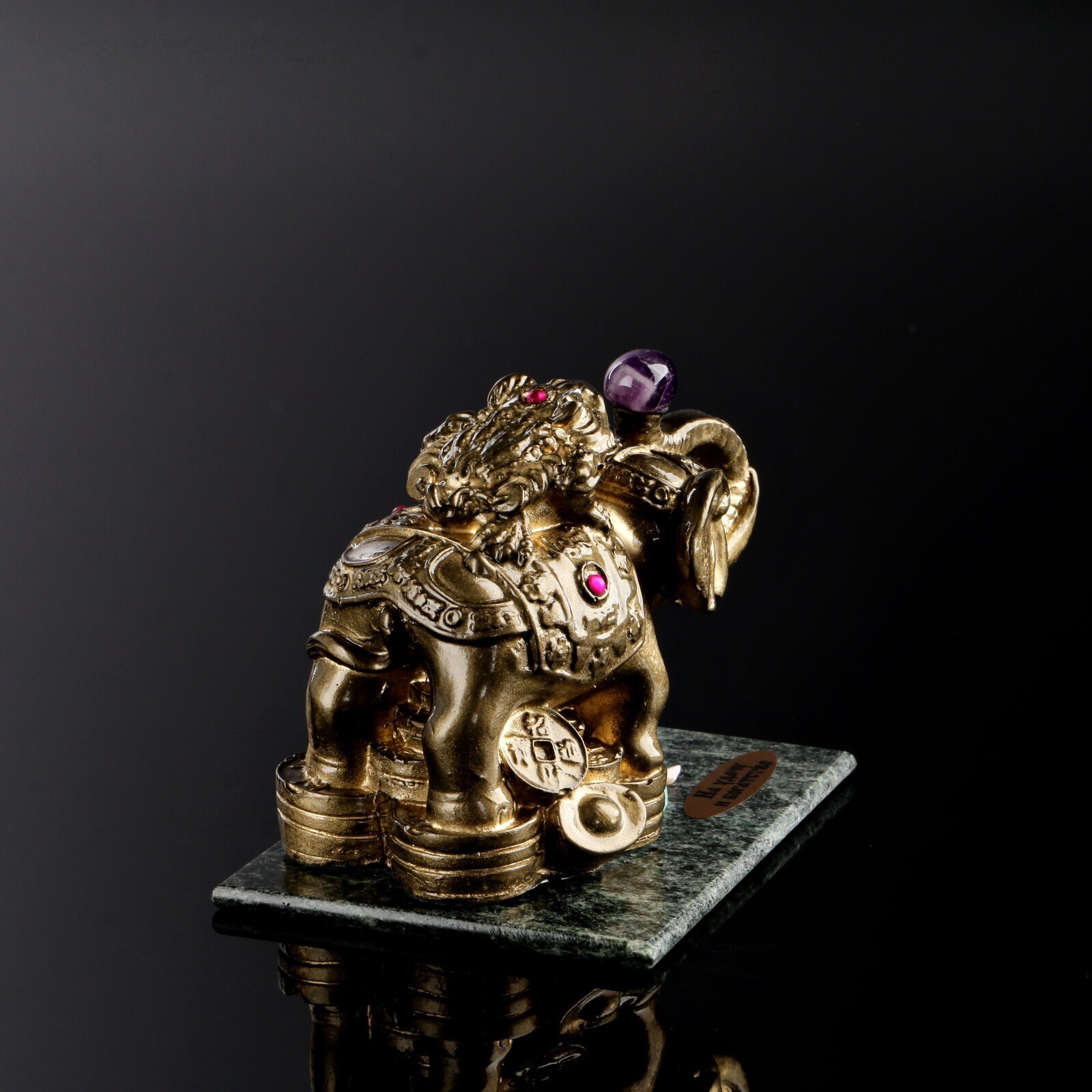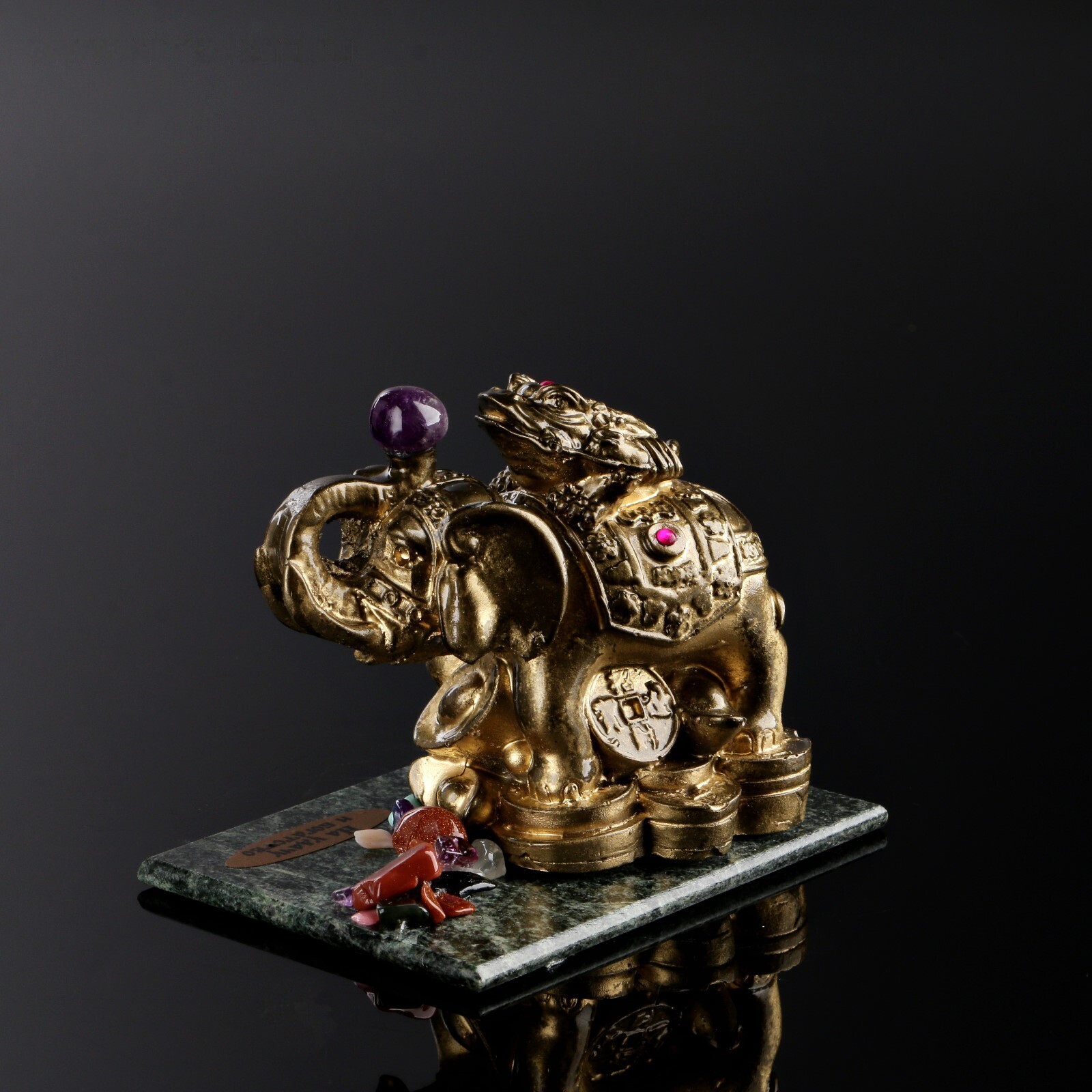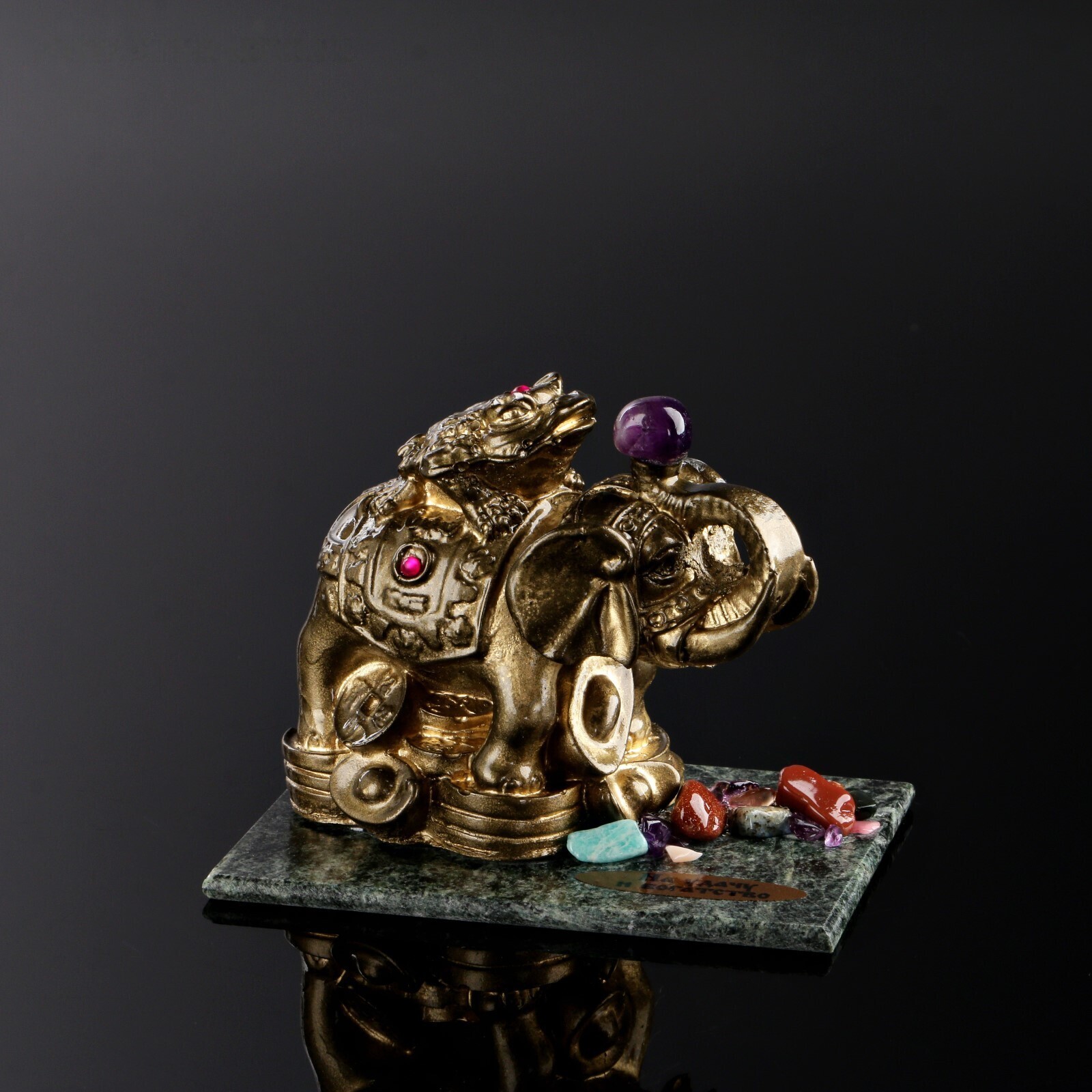Сувенир "Слон с лягушкой", 7х10х7 см, змеевик, гипс, минералы