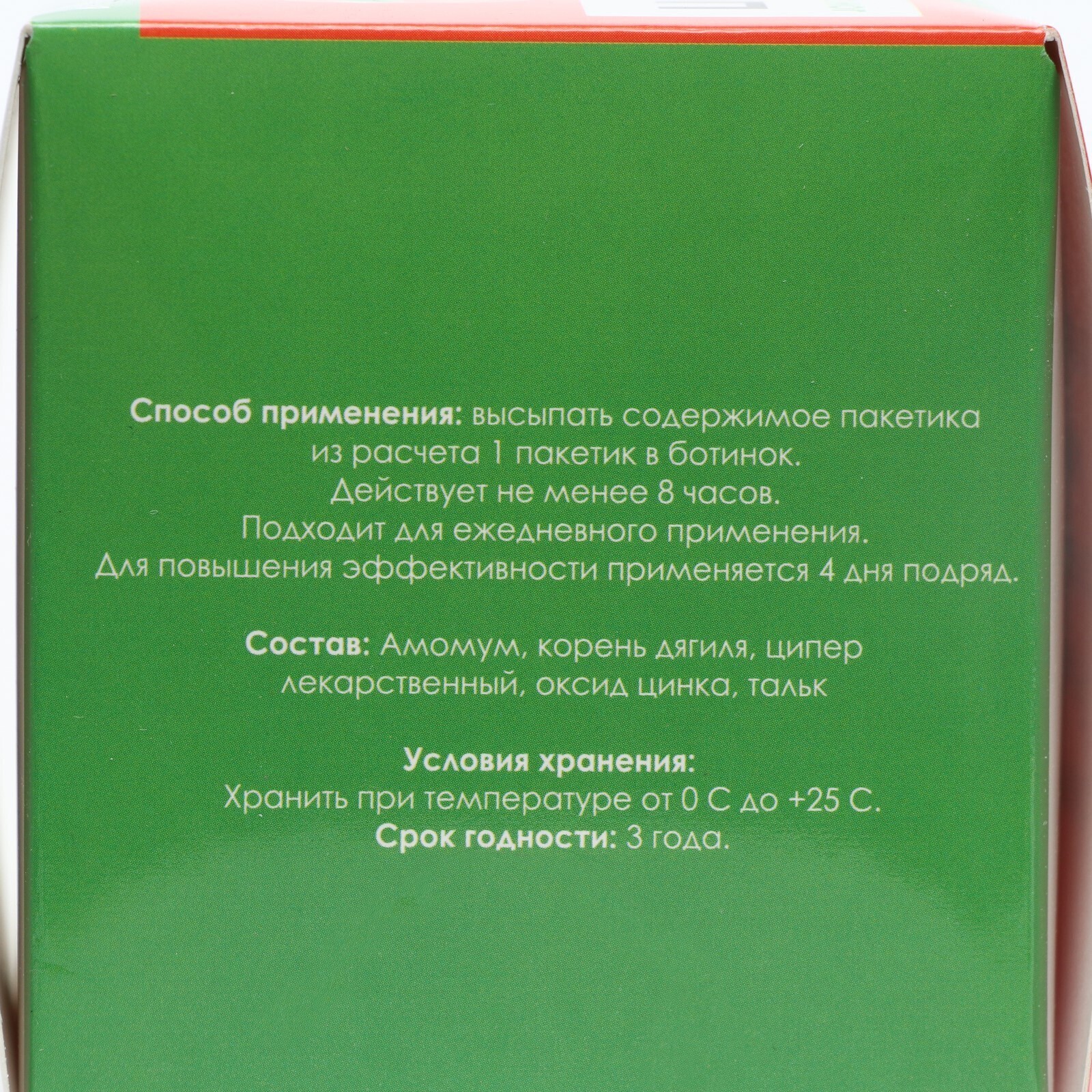 Состав: амомум, корень дягиля, ципер лекарственный, оксид цинка, тальк.