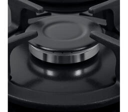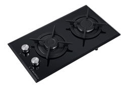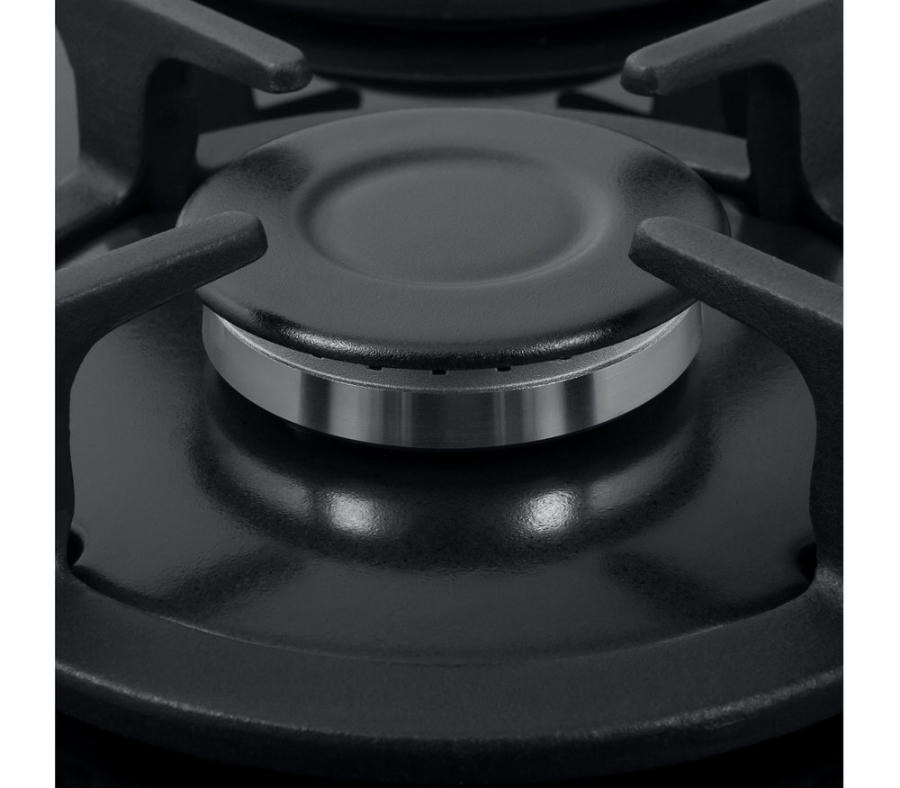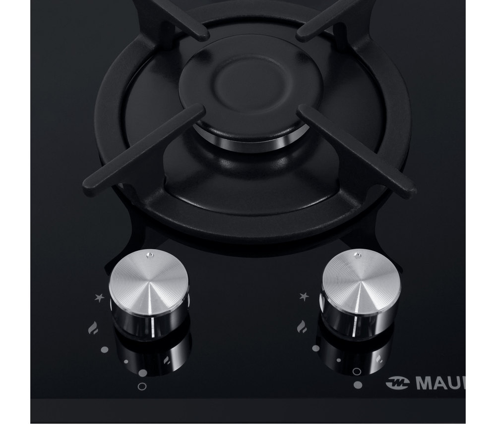Панель выполнена из термостойкого черного стекла толщиной 8 мм с фацетом по всему периметру. В данной модели установлены высококачественные итальянские горелки SABAF. Две конфорки разного диаметра с мощностью 1700 Вт и 2600 Вт укомплектованы сферическими чугунными решетками.